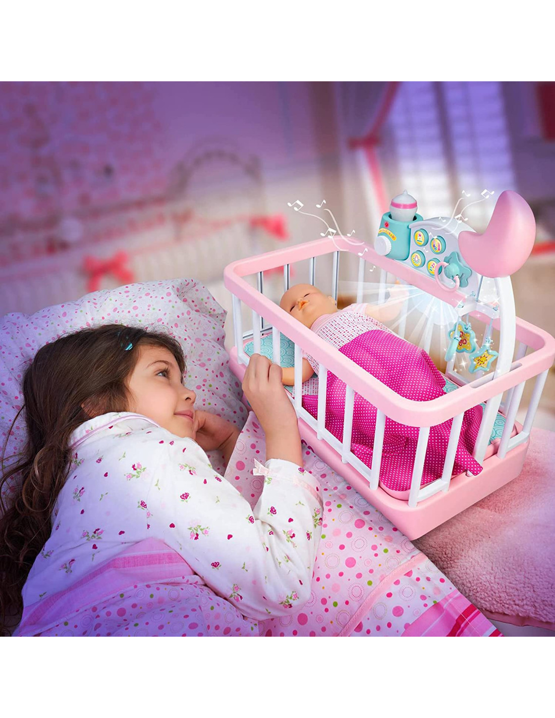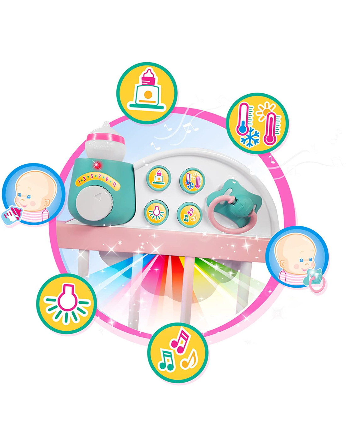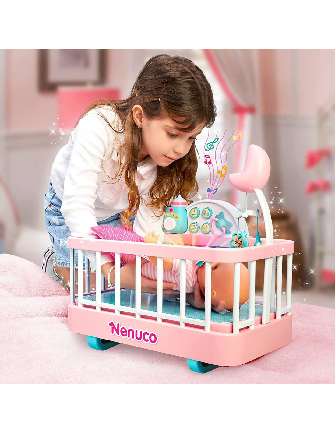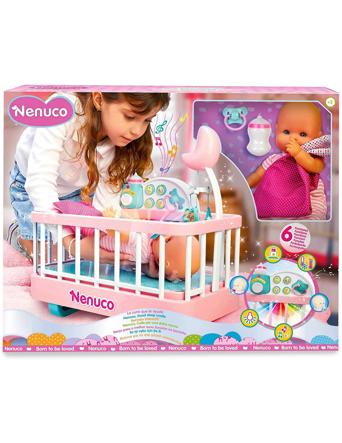 Con la culla interattiva, sarà possibile capire perchè Nenuco piange! Quando lo metterai nella culla, Nenuco inizierà a piangere... perché? Devi scoprirlo! Prova tutte le funzioni della culla finché Nenuco non smette di piangere; La culla ha funzioni con luci e suoni: Ninna nanna, scaldabiberon con luce, riscaldamento centralizzato (linea di led accesi in rosso o blu) e luce notturna (linea LED); Include un Nenuco da 35 cm con corpo morbido, un ciuccio, unabiberon e un doudou.