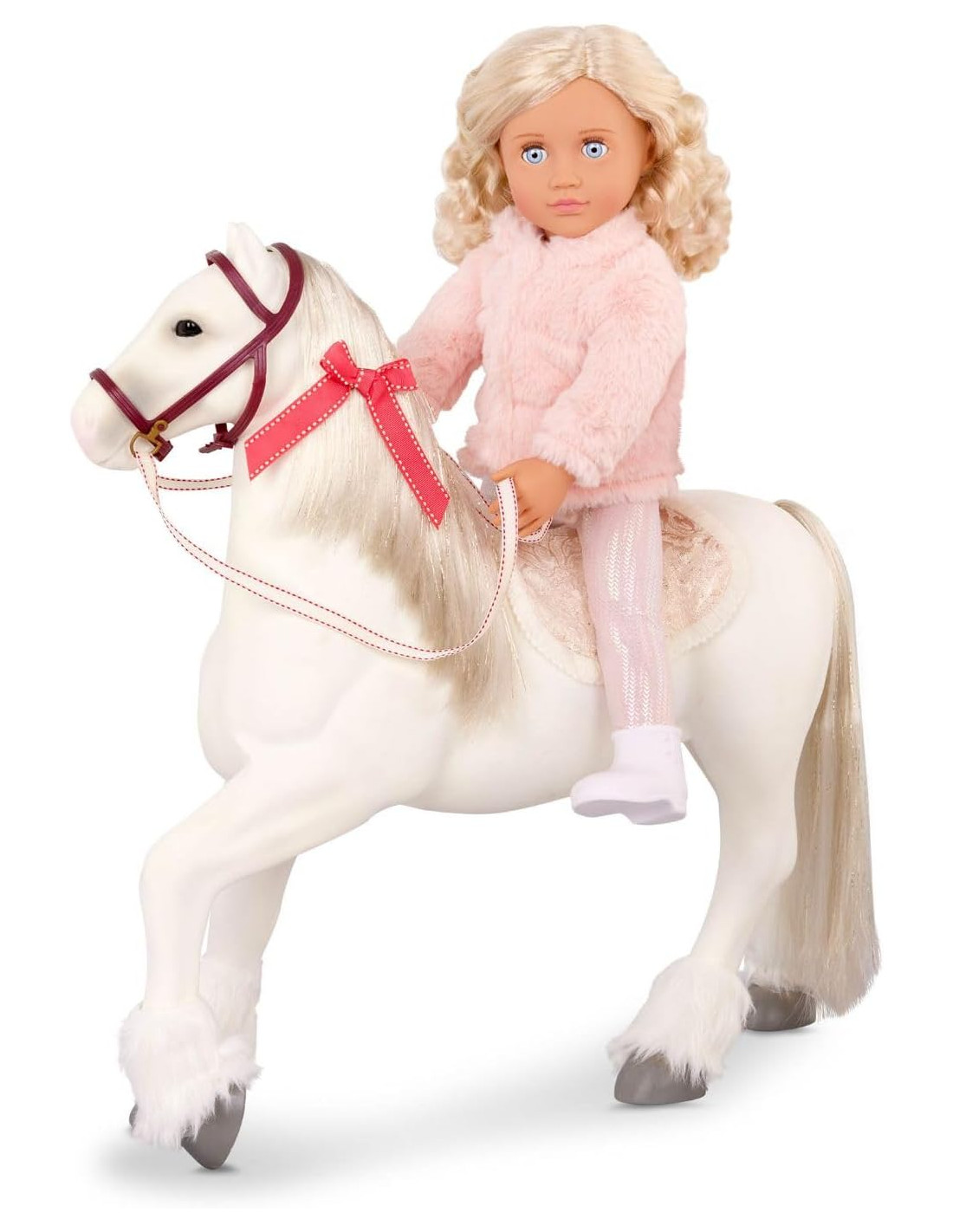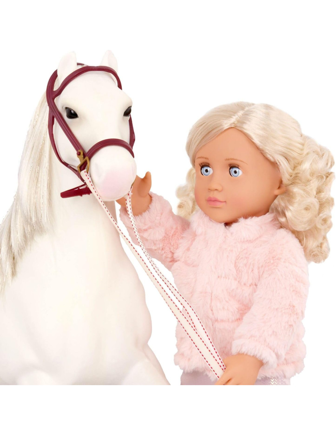 Cavallo per le vacanze da 50,8 cm: sorprendi e delizia i tuoi amanti dei cavalli da bambola da 45,7 cm con il cavallo Clydesdale di Our Generation e crea celebrazioni festose insieme! Caratteristiche maestose: ha un bellissimo cappotto bianco con una lunga criniera bianca scintillante e coda divertente da acconciare e 4 coperture per zoccoli in finta pelliccia per scivolare comodamente attraverso la neve! Include: cavallo, coperta da sella, imbracatura per briglie, 4 coperture per zoccoli in finta pelliccia, fiocco per capelli, 2 bastoncini di caramelle, calze per vacanze e borsa per dolcetti. (Dolls e slitta venduti separatamente).