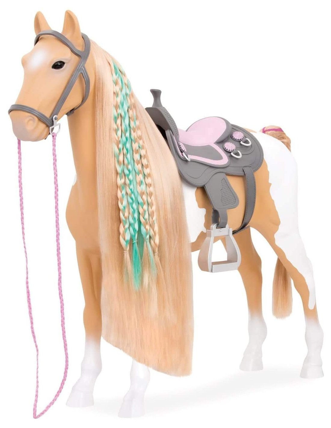 Un cavallo beige e bianco di 51 cm appositamente progettato per le bambole Our Generation. Il cavallo beige e bianco.