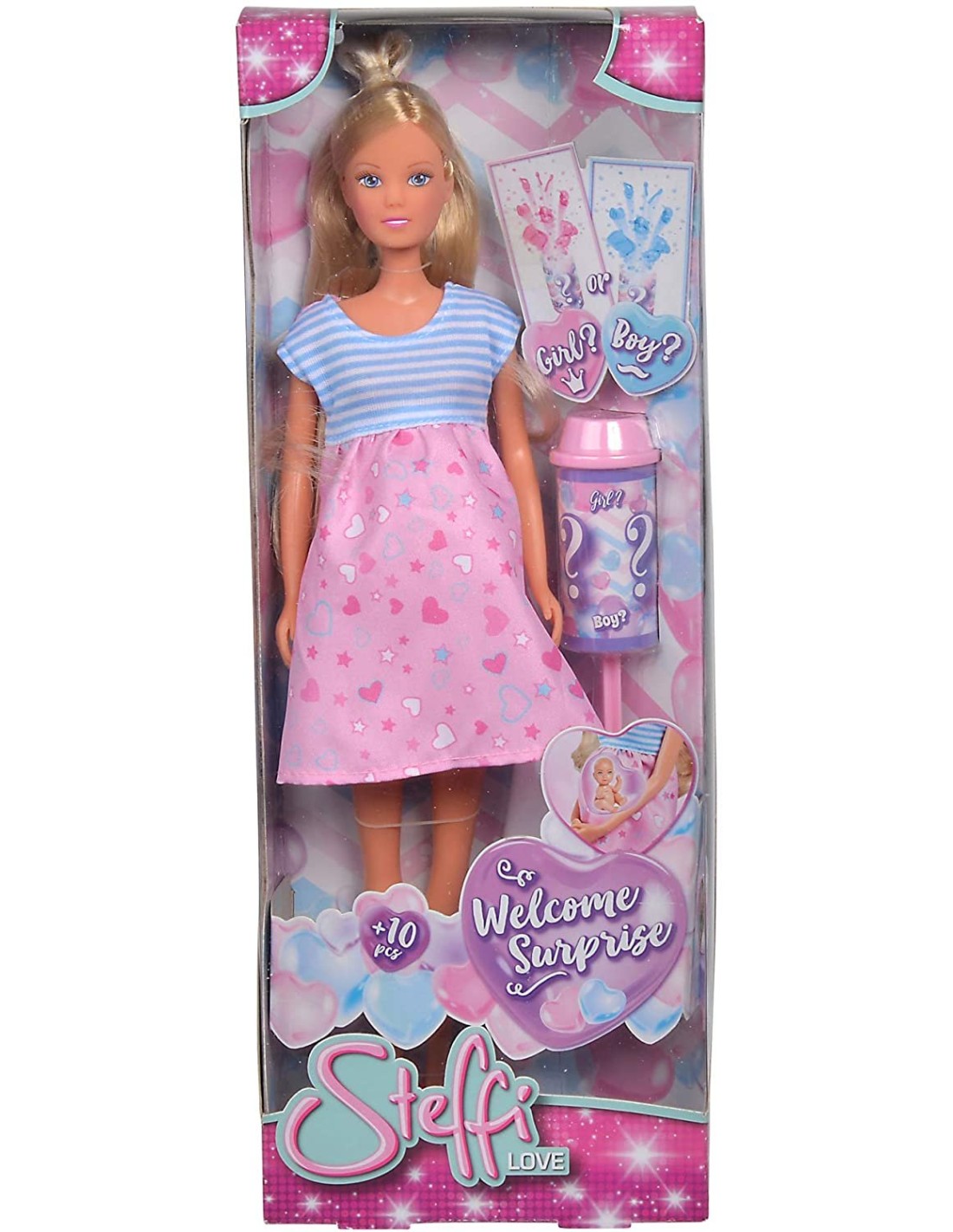La famiglia di steffi love è davvero felice e sta diventando sempre più numerosa. Steffi love, kevin, evi, un piccolino, la simpatica cagnolina e ora in arrivo anche un nuovo bebè. Steffi love aspetta un bebè. Sarà un maschietto oppure una femminuccia? per scoprirlo basterà vedere cosa nasconde il tubo rosacoriandoli ed accessori per bebè rosa o azzurri? welcome surprise. Da utitilizzare sotto la sorvegliarza di un adulto -La famiglia di steffi love sta diventando sempre più numerosa -Steffi love aspetta un bebè! sarà un maschietto oppure una femminuccia? per scoprirlo basterà vedere cosa nasconde il tubo rosa -Fashion doll di 29 cm -Adatta a bambine da 3 anni in su La famiglia di steffi love sta diventando sempre più numerosa Steffi love aspetta un bebè! sarà un maschietto oppure una femminuccia? per scoprirlo basterà vedere cosa nasconde il tubo rosa Fashion doll di 29 cm Adatta a bambine da 3 anni in su