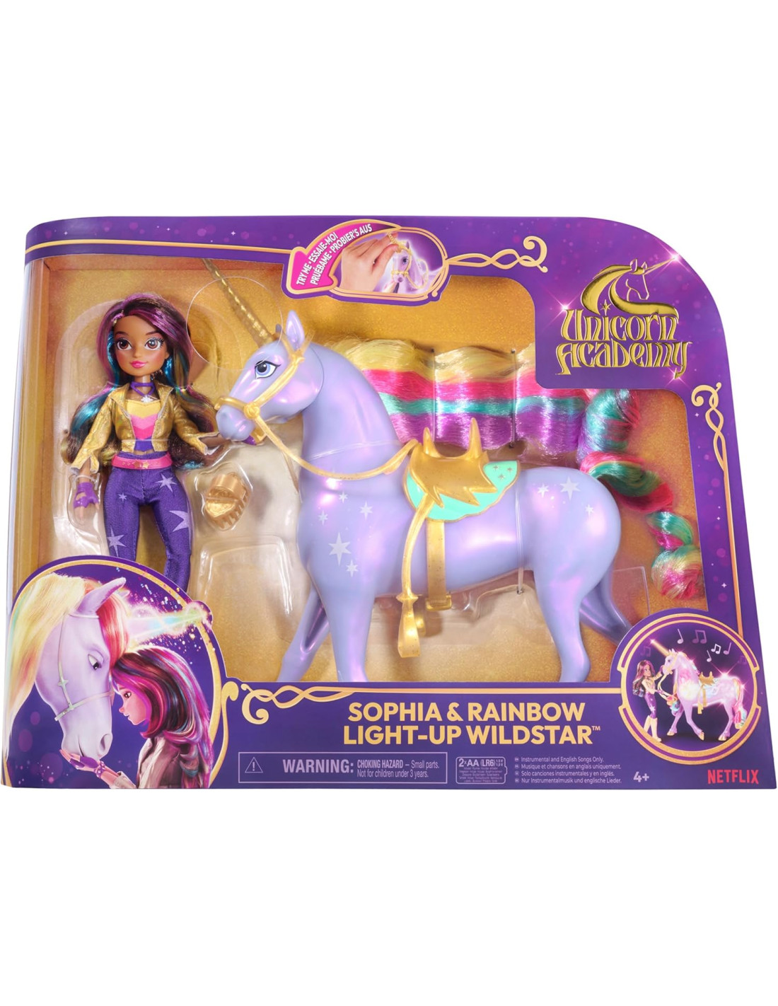 SBLOCCA ALTRE AVVENTURE: dopo aver creato un legame, spazzola Wildstar, scopri un'altra canzone, accendi una luce di difesa, illumina la luce guida con il corno e molto altro. Posiziona la bambola Sophia in groppa a Wildstar e preparati per una cavalcata nell'avventura