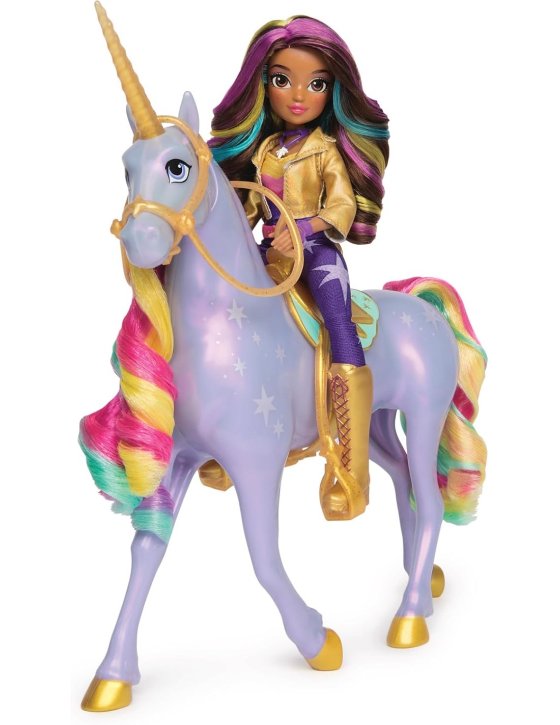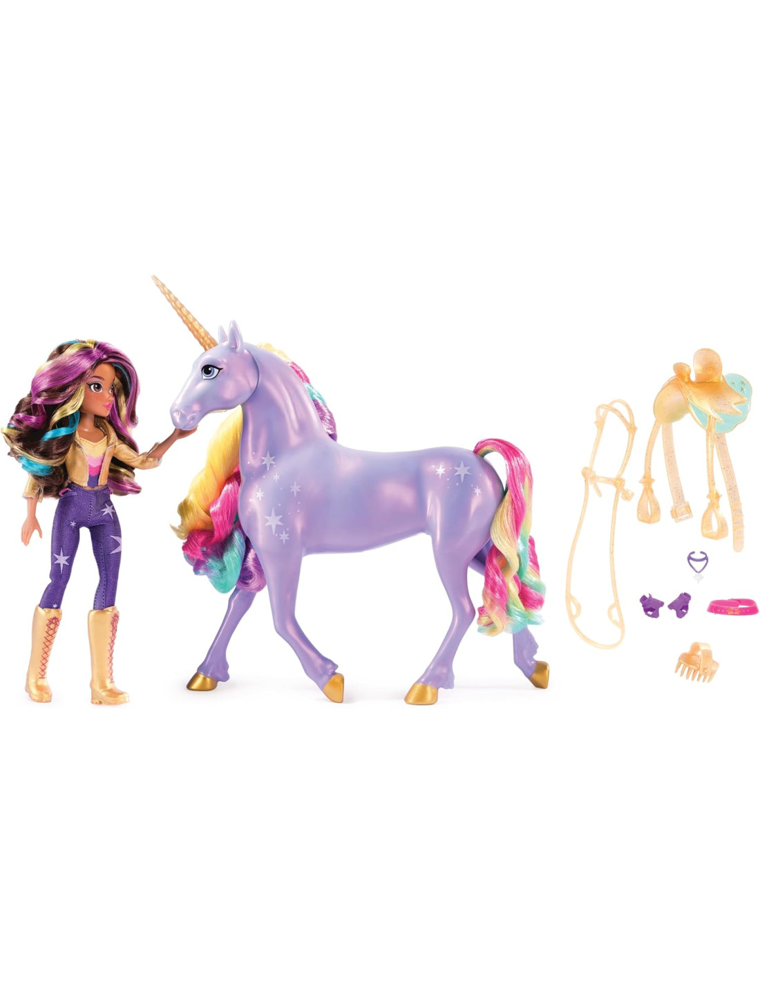 NETFLIX e sui libri per bambini di grande successo, danno vita al gioco creativo. Divertenti unicorni giocattolo, regali di compleanno e per ogni occasione Include: 1 unicorno, 1 bambola, 1 sella rimovibile, 1 briglia rimovibile, 6 capi di abbigliamento rimovibili, 1 accessorio per lo styling dei capelli, 1 guida rapida, 1 guida per l'uso