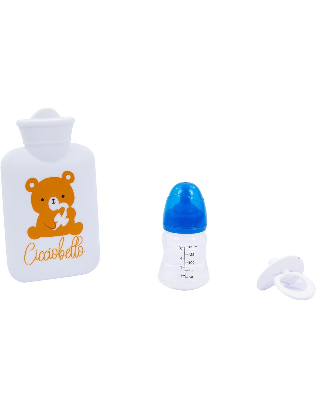 Cicciobello ha fame e vuole il biberon e ogni tanto gli viene la bua alla pancia, piange e ha bisogno delle cure della mamma: piegando le gambe fa un po' il broncio e si sente subito meglio, con il ciuccio si rilassa. Bambola di 42 cm.