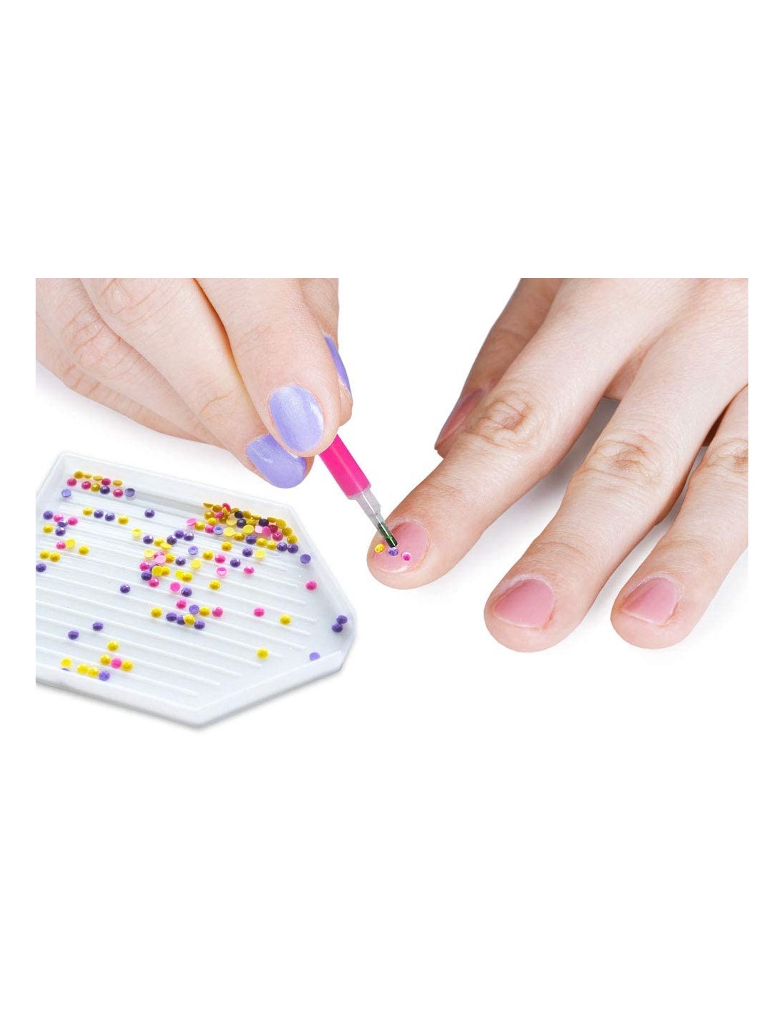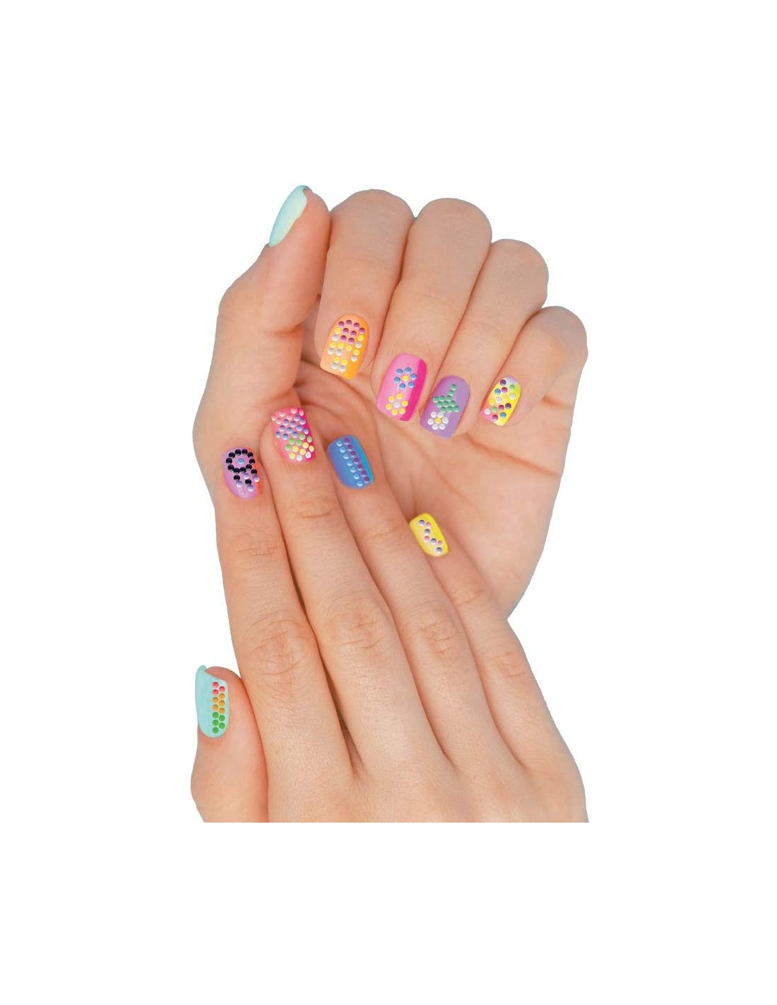 Fantastica attività decorativa: attraverso il sistema “dipingi con i numeri” puoi rivestire di colorati e luccicanti diamantini ciò che preferisci In questo set trovi il necessario per personalizzare le tue unghie con fantastiche decorazioni 3d. Contiene: tester per disegni, set di unghie finte da decorare, adesivi con guida per attività, 3 smalti, kit per decorare completo con 7 colori di gemme.