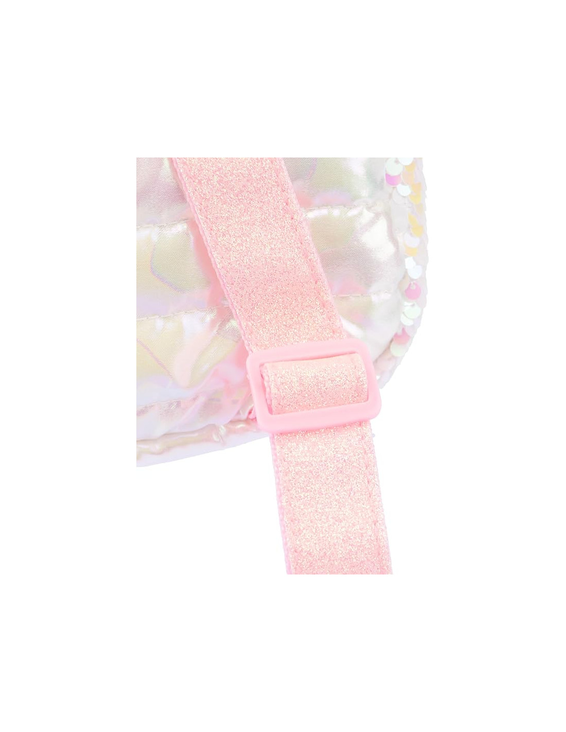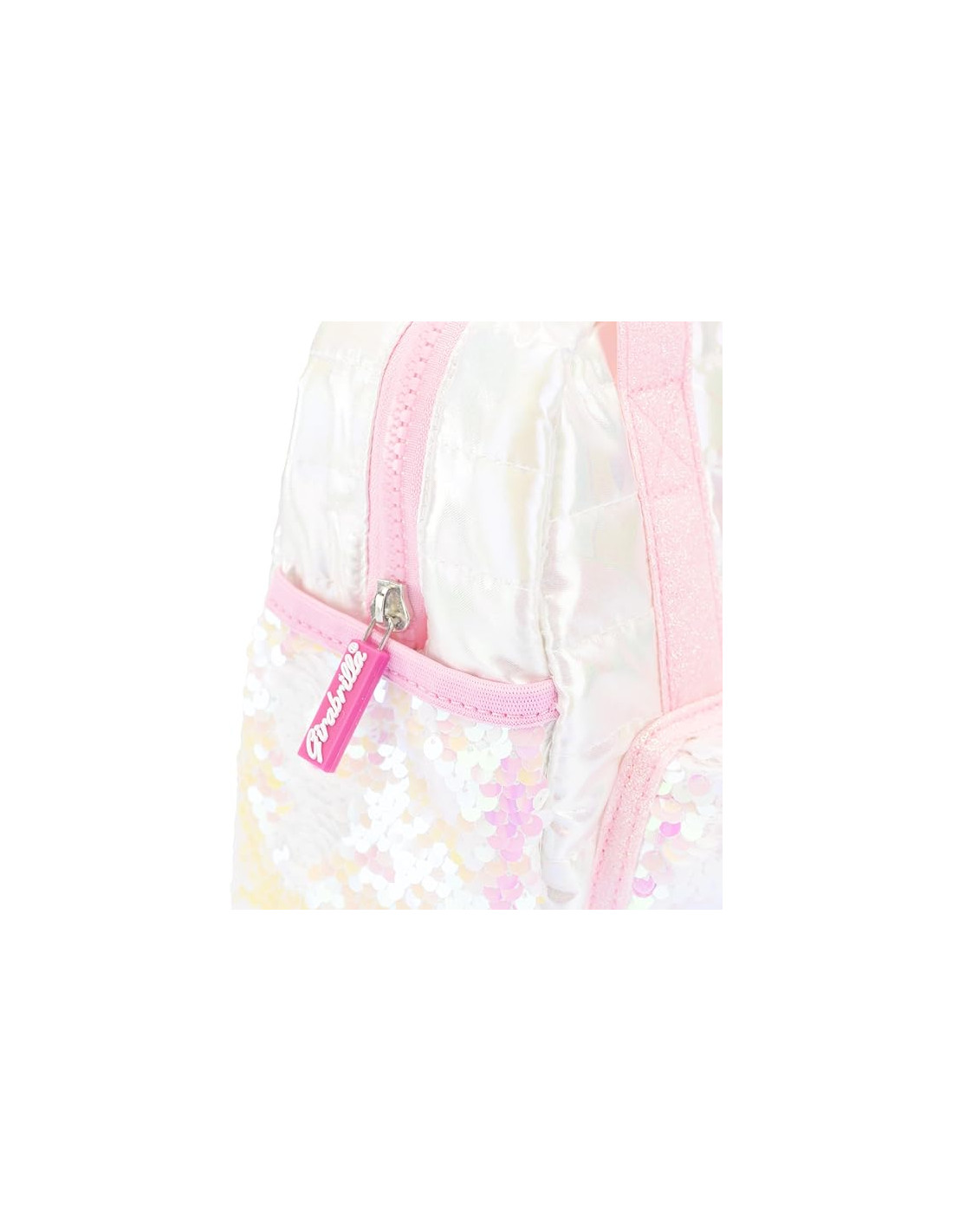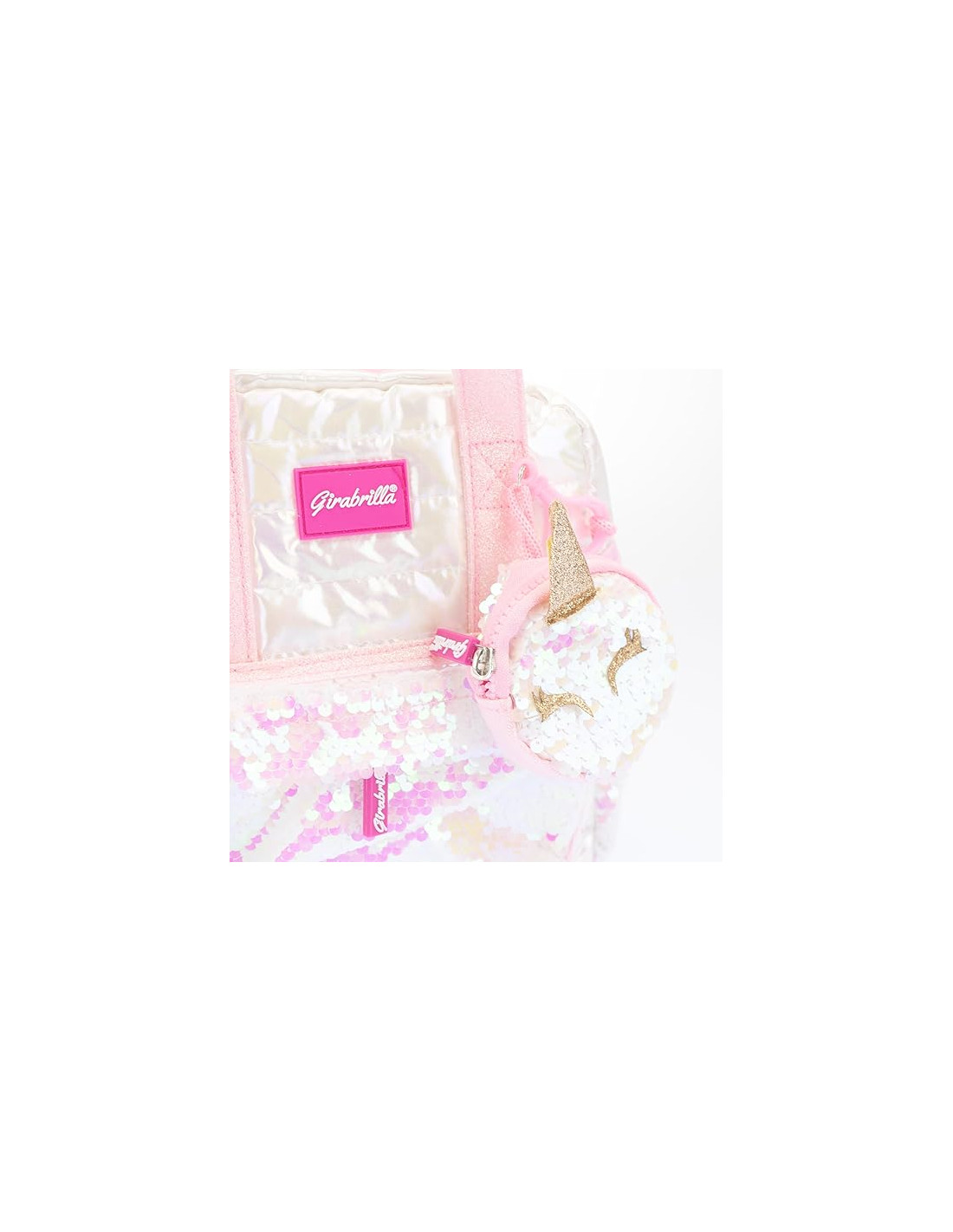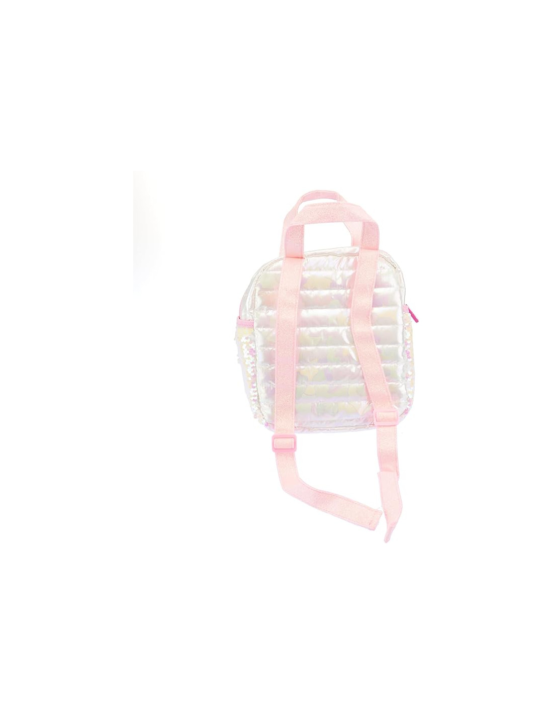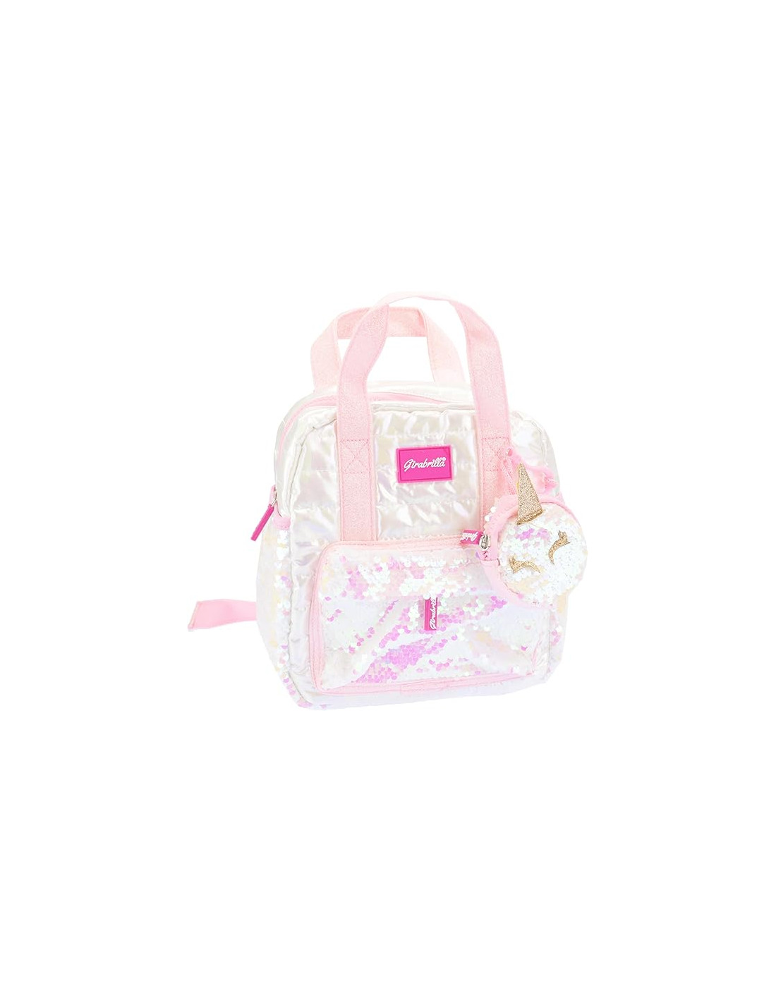 GIRABRILLA MINI PUFFER: mini zaino bianco da scuola per bambini dai colori cangianti, realizzato con materiali di qualità morbidi al tatto, dotato di 3 tasche esterne in paillettes reversibili che possono contenere diversi oggetti, in più un simpatico portamonete a forma di unicorno. CARATTERISTICHE: lo zaino Mini Puffer presenta una tasca frontale con cerniera e due laterali aperte, in paillettes che cambiano colore e un simpatico portamonete a forma di unicorno. REGOLABILE e PRATICO: Spalline regolabili a piacimento e pratiche maniglie in tessuto rosa glitterato per poterlo indossare o trasportare con facilità. DIMENSIONI: 26 cm x 25 cm x 7 cm. Prodotto ORIGINALE Girabrilla By Nice Group. USO: adatto per bambini dai 6+. Si presta ad essere usato come borsa per il tempo libero.