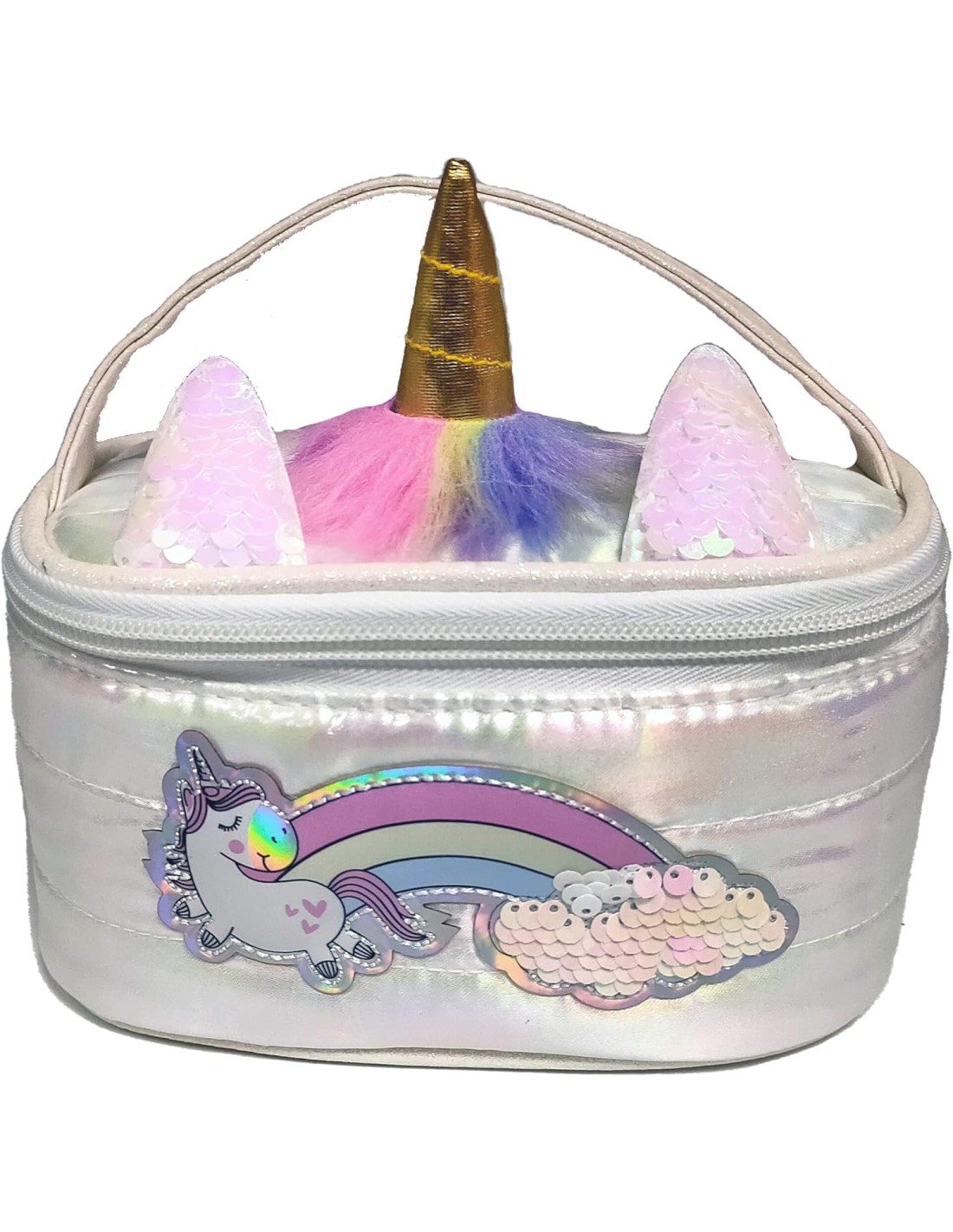 Girabrilla Puffer Unicorn Case White, 1 mini Porta Oggetti Bianco con Unicorno iridescente