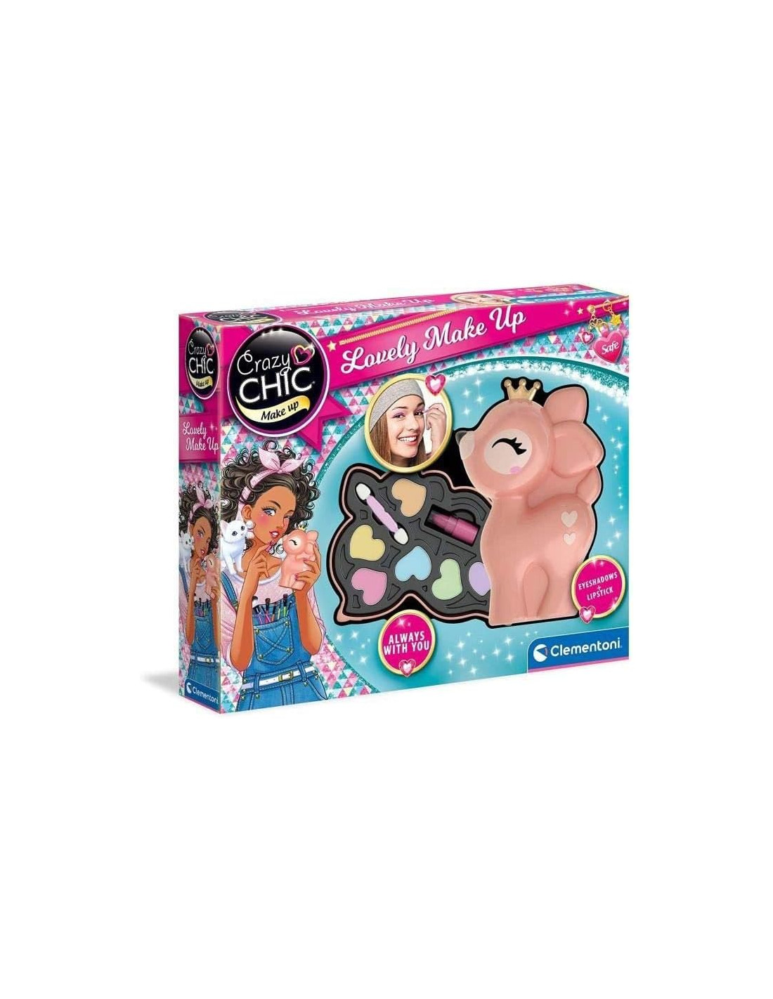 Clementoni Crazy Chic - Lovely Make Up Cerbiatto, Cofanetto Trucchi Bambine 6+ Anni, Trousse Portatile con Set Cosmetici Sicuri per Bambine, Idea Regalo Collezionabile