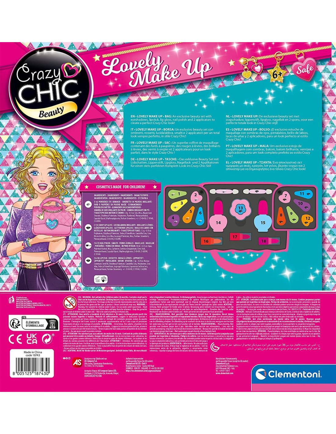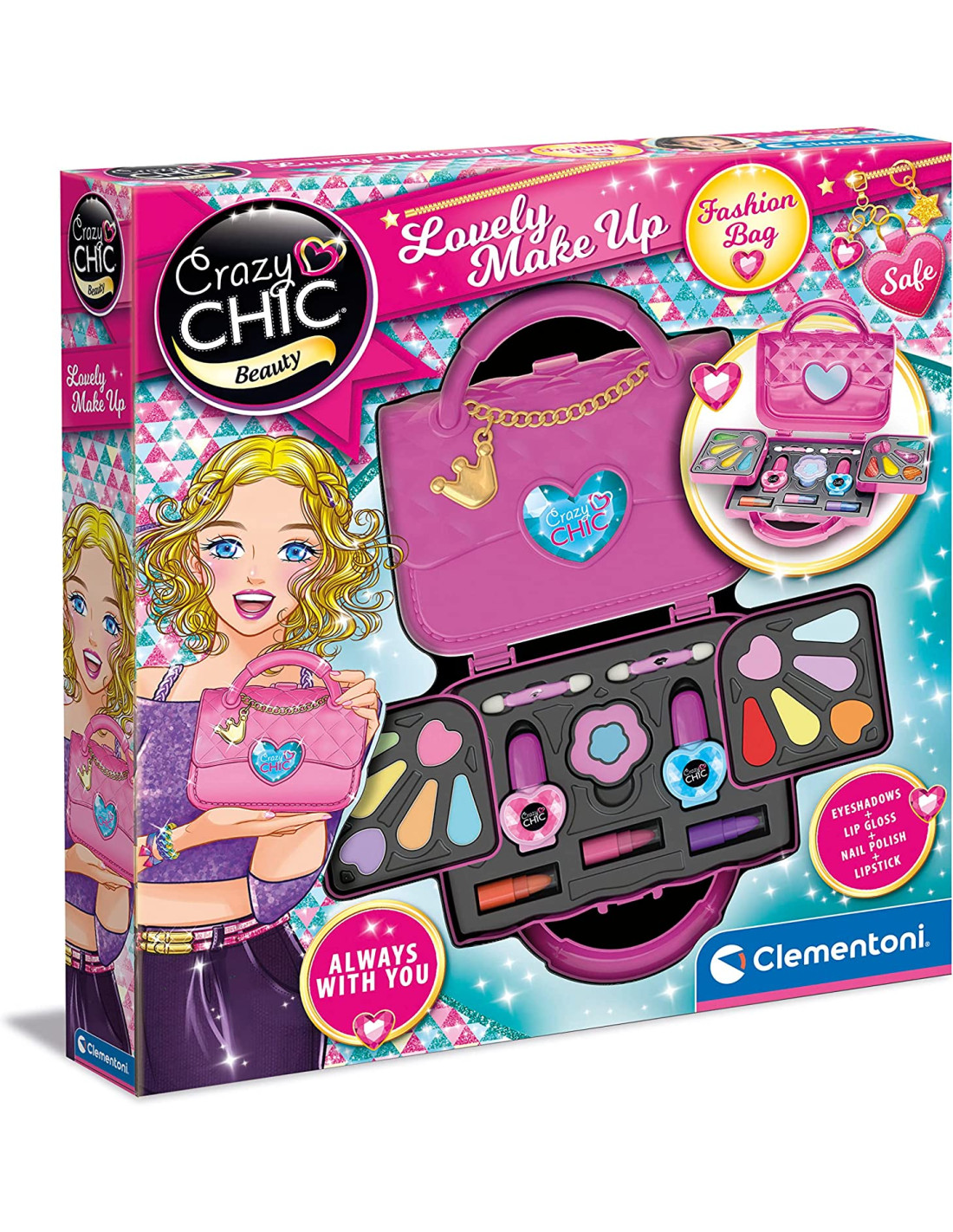 Clementoni- Crazy Chic-Make Up Bag-Trousse, Cofanetto Lavabili, Set Cosmetici Bambini 6 Anni, Borsetta con Trucchi, 18743