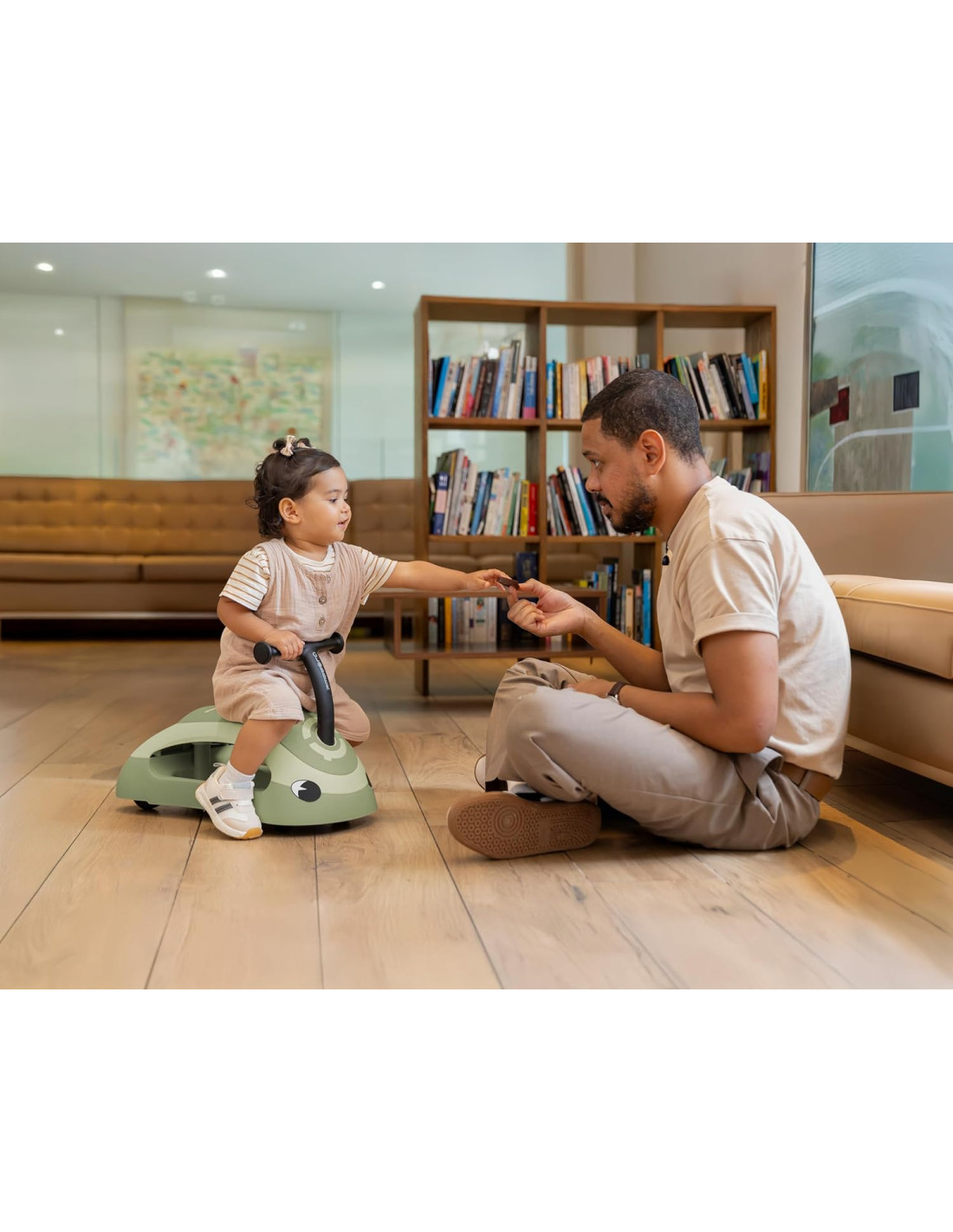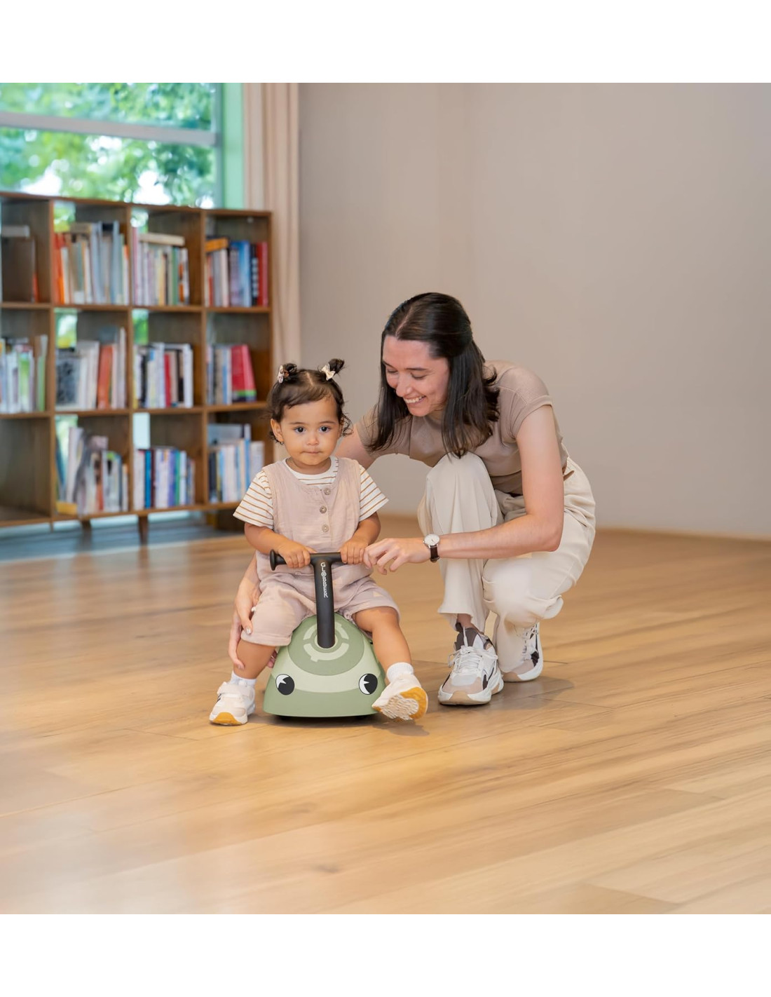 Versatile veicolo 2 in 1 con messa a fuoco sulla sostenibilità: il GLOBBER Walk N' Roll 2 in 1 Eco accompagna i bambini a partire da circa 1 anno di sicurezza in casa e per divertirsi: conversione senza attrezzi da girello a auto con sistema pieghevole brevettato per la massima flessibilità. Facile da montare e pratici extra: il sistema a sgancio rapido senza attrezzi trasforma i cuscinetti frontali scorrevoli in ruote fisse. Maniglie di sicurezza ergonomiche e sedile basso con vano portaoggetti rimovibile favoriscono l'ascesa autonoma e la personalizzazione con tre set di adesivi. Comfort e sicurezza: due ruote in EVA a 360° anteriori e due ruote rigide in EVA posteriori garantiscono un rotolamento fluido e una guida uniforme. La seduta ergonomica particolarmente bassa (20 cm) garantisce una posizione di seduta sicura e confortevole. Dettagli tecnici e dimensioni: altezza manico 42 cm, auto scivolante 33 cm. Altezza seduta: 20 cm. Ruote anteriori in EVA orientabili a 360°, posteriore saldamente trasformabili in cuscinetti scorrevoli. Telaio in plastica riciclata con rinforzo in fibra di paglia. Ecologico e resistente: confezione in carta riciclata senza plastica. Realizzato in plastica riciclata (GRS) e fibre di paglia biodegradabili. Peso massimo supportato: 20 kg. Ricambi e servizi post-vendita sono disponibili direttamente tramite il nostro sito web di GLOBBER Germania.