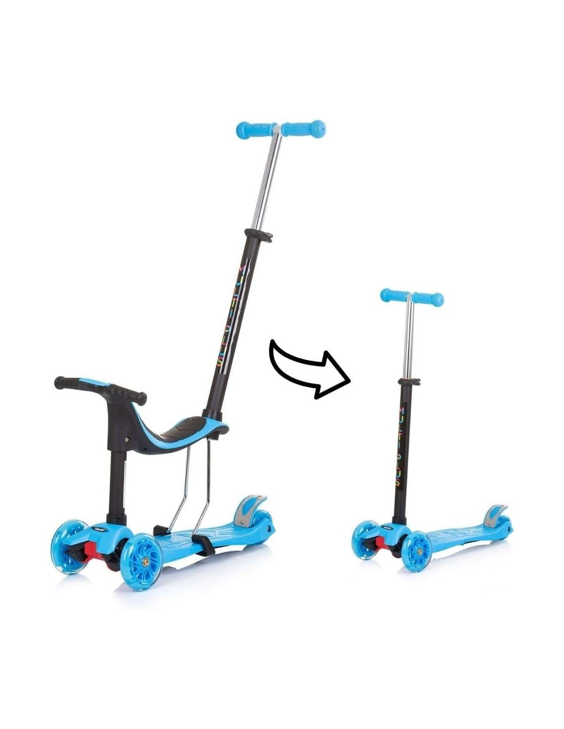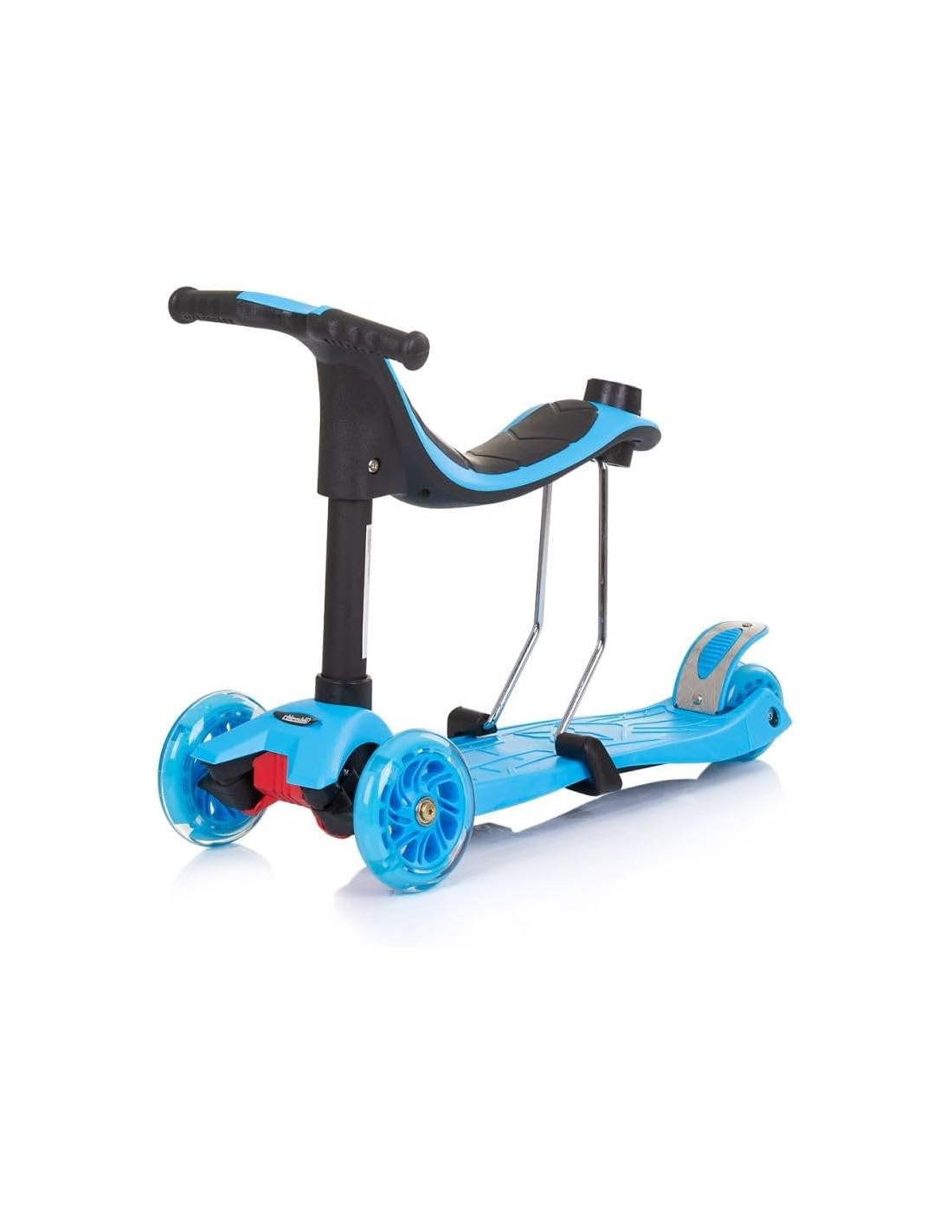 Freno della ruota posteriore, manubrio regolabile in 3 posizioni in altezza, ampia pedana antiscivolo, sedile rimovibile