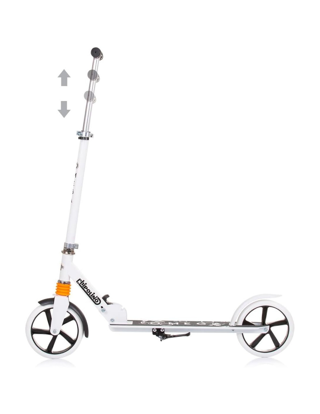Manubrio a T regolabile in altezza manubrio girevole a 360°, ruote in PU da 200 mm, cavalletto laterale freno posteriore, pieghevole compatto, impugnature antiscivolo