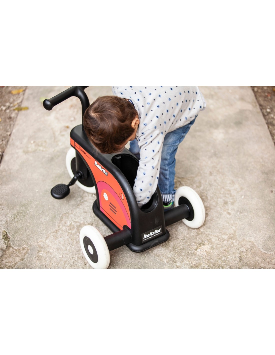 Triciclo primi passi evolutivo dotato di pedali inseribili;