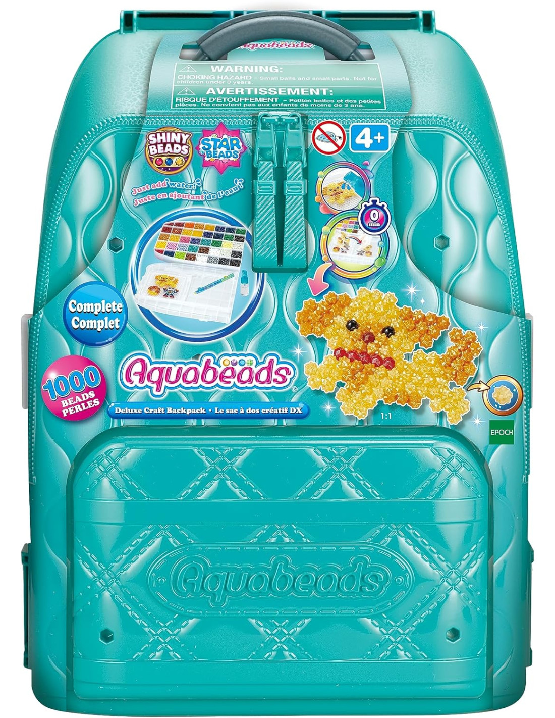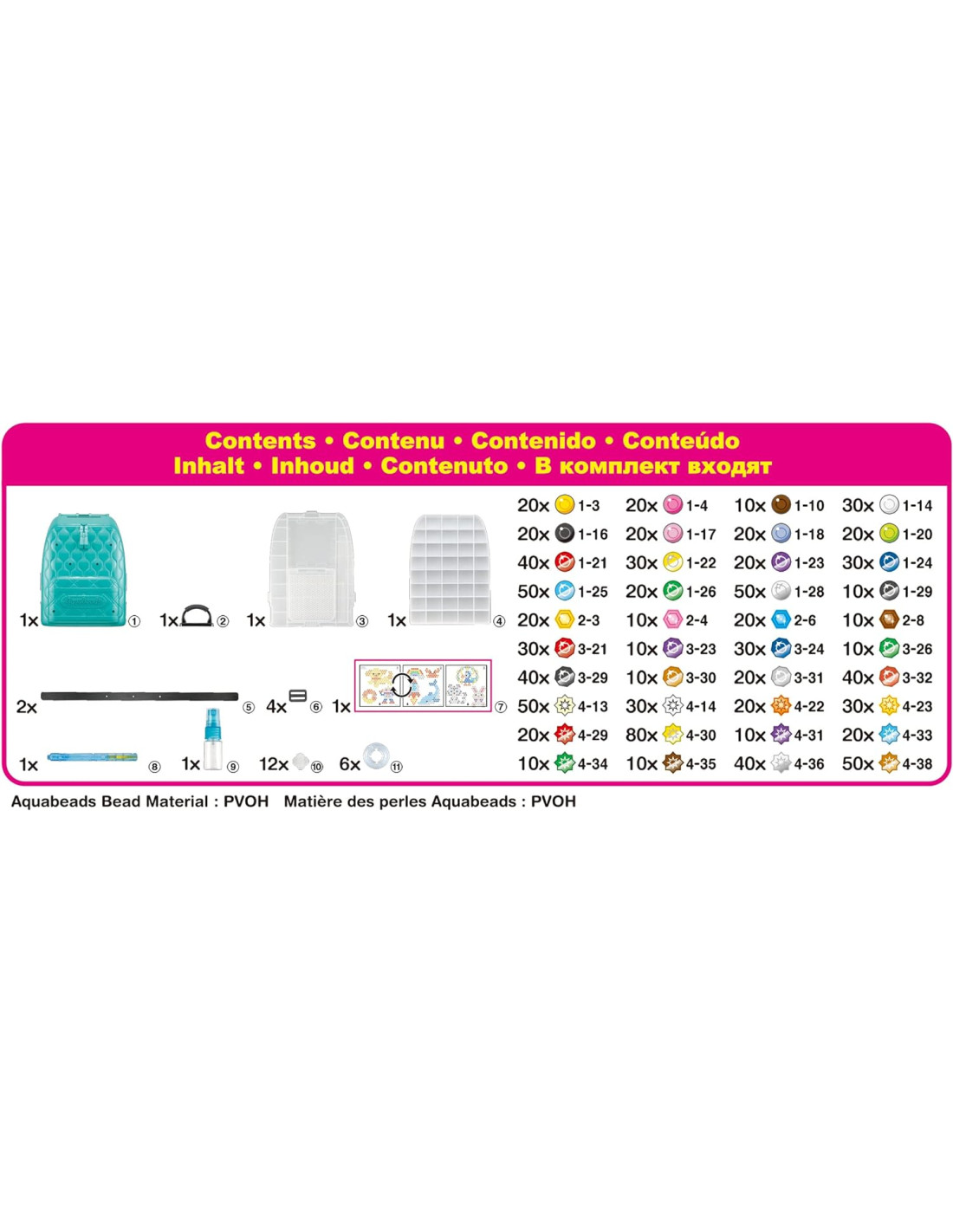 Questo set completo di perline include 1000 perline in 40 colori, zaino con vassoio a fogli mobili e palette di perline, penna Aquabeads a doppia faccia, spruzzatore, pioli di design, fogli modello e istruzioni I modellini di design includono cani, robot, delfini, arcobaleno e altri motivi che possono essere realizzati posizionando sul vassoio le perline solide, gioiello, poligonali e a stella incluse Lo zaino può essere trasportato. Zaino e cintura possono essere decorati con le tue creazioni preferite Include perline solide, perline gioiello, perline poligonali e perline a stella, comprese le perline colorate lucide con effetto glitterato. Crea più design di perline con le ricariche Aquabeads vendute separatamente Aquabeads è adatto a bambini dai 4 anni in su. Non adatto a bambini sotto i 3 anni a causa di piccole parti