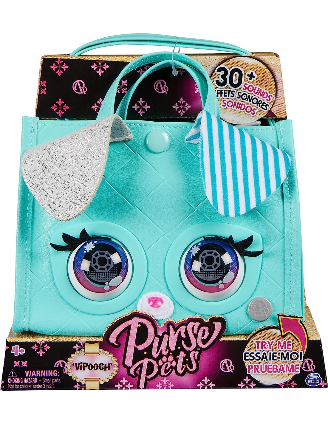 SPIN MASTERquesta borsetta alla moda per bambine ha occhi espressivi che si chiudono per davvero. Mentre sei in movimento, la tua borsa tote Purse Pets sbatte le palpebre e interagisce con te. Premile delicatamente la testa e ti manderà un bacio.