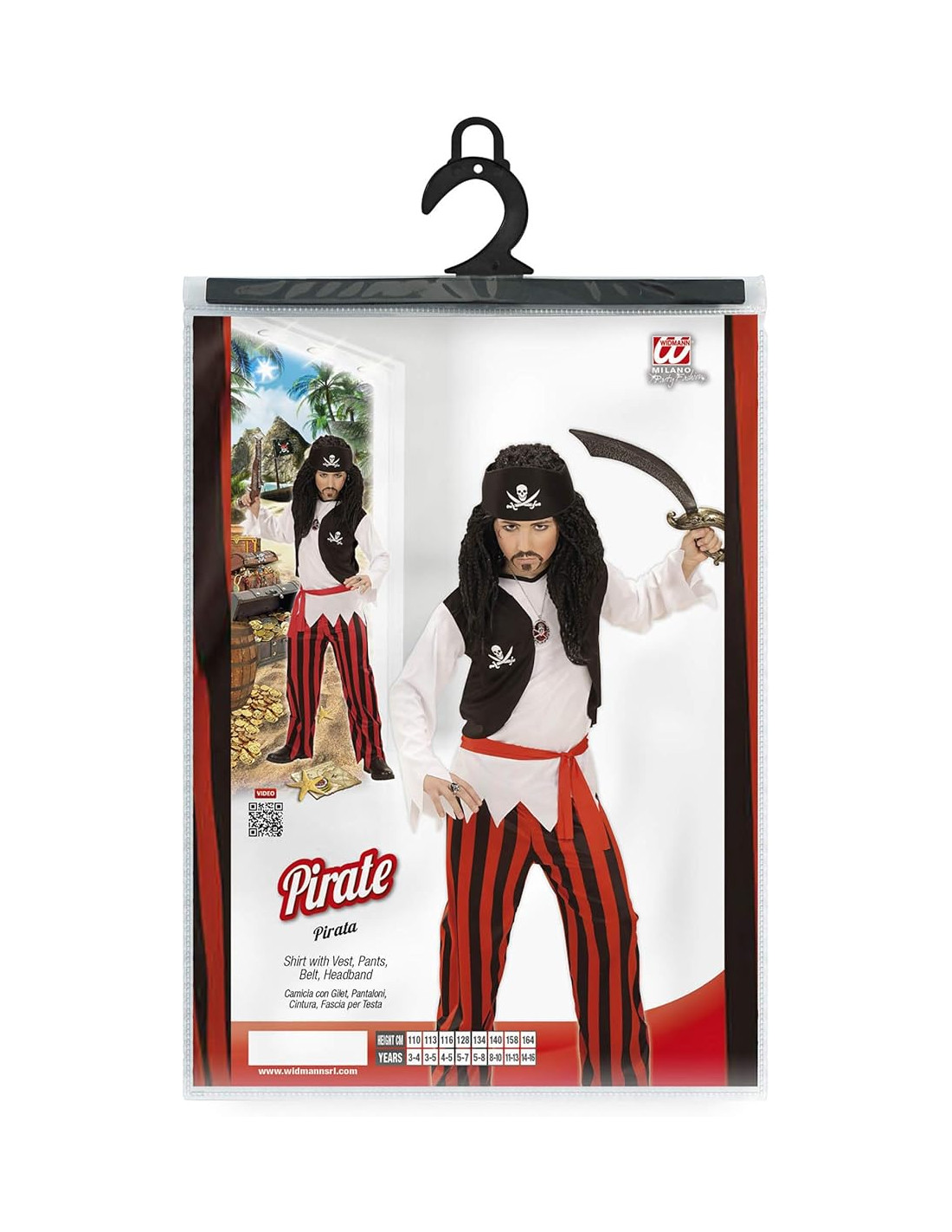 Pirata camicia con gilet, pantaloni, cintura e copricapo 5/7 anni