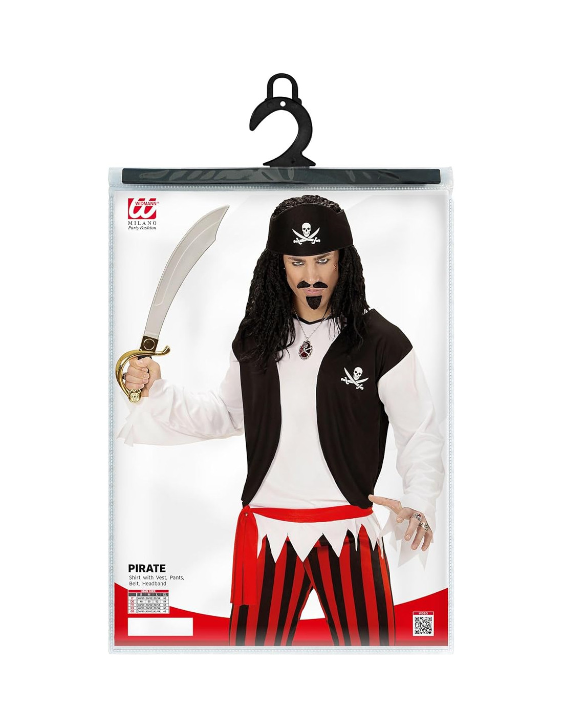 Pirata camicia con gilet, pantaloni, cintura e copricapo Tg. M