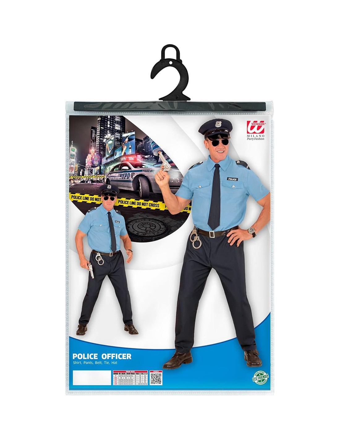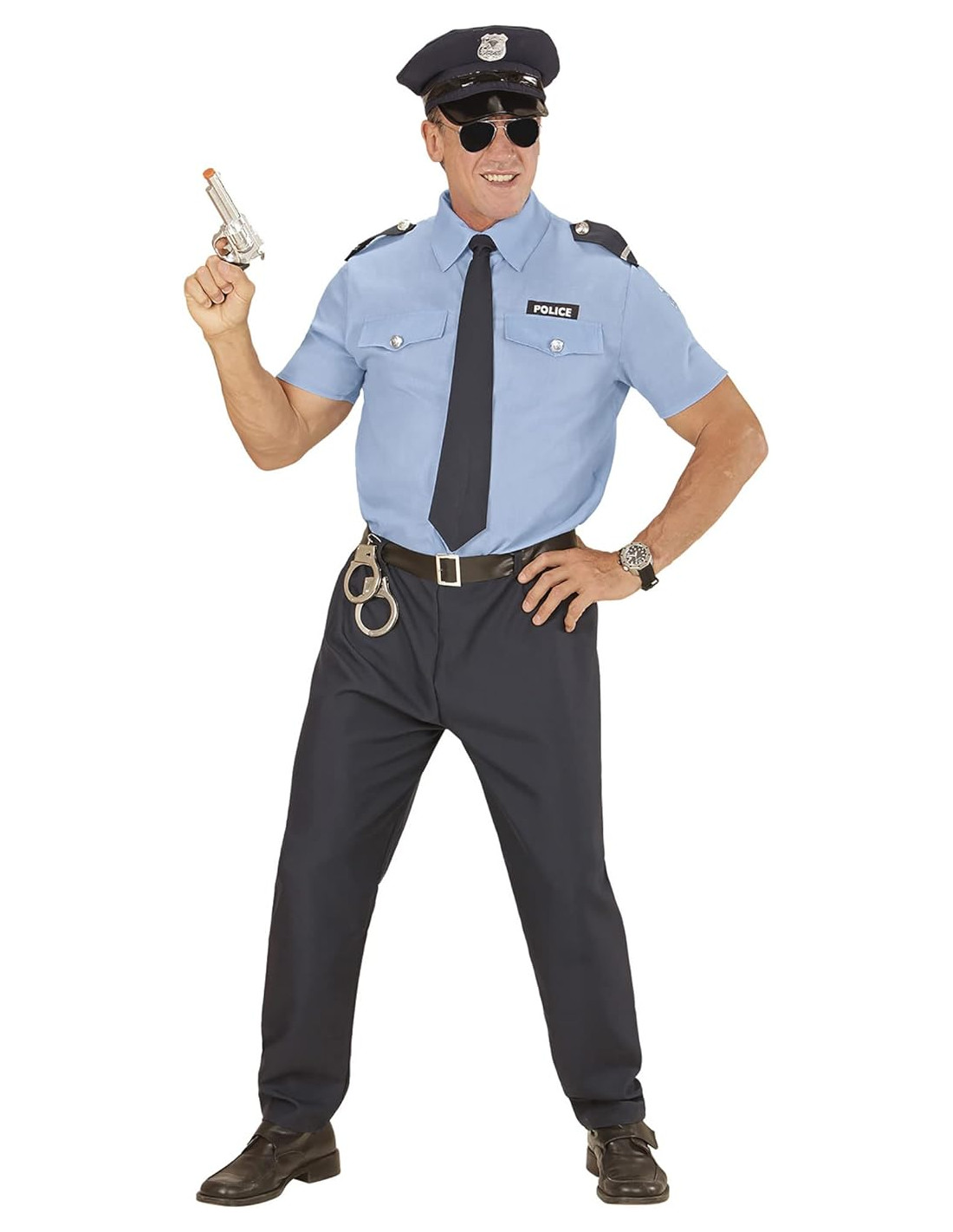 Poliziotto camicia, pantaloni, cintura, cravatta, cappello Tg. M