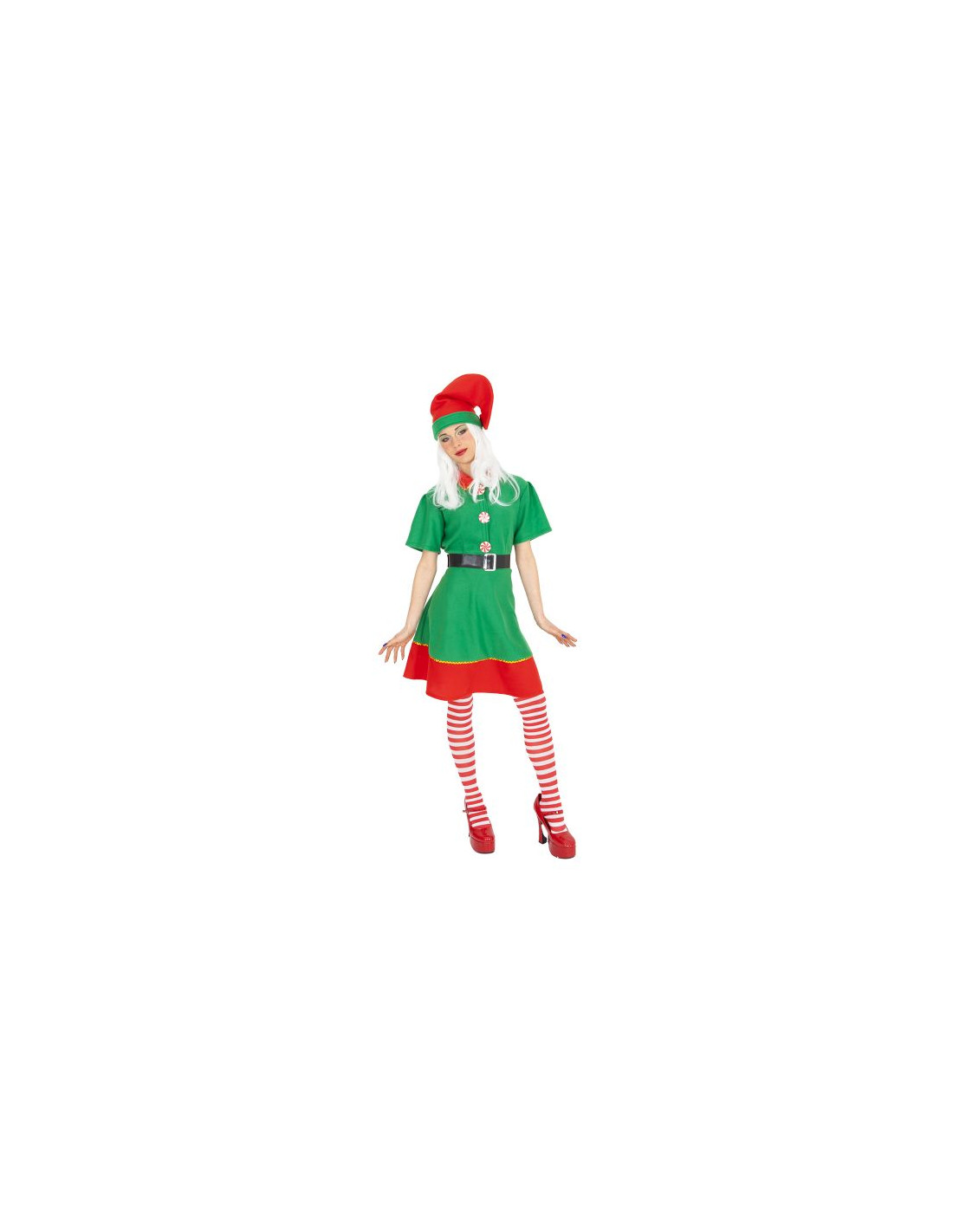 INCLUDE: Questo costume da elfo per donna contiene un abito verde a maniche corte con dettagli stampati e cintura attaccata. Chiusura posteriore in velcro per indossarla facilmente. Inoltre, contiene collant a righe bianche e rosse e un caratteristico cappello da elfo. Questo costume è realizzato in poliestere, un materiale comodo e resistente per lunghe ore di gioco.
