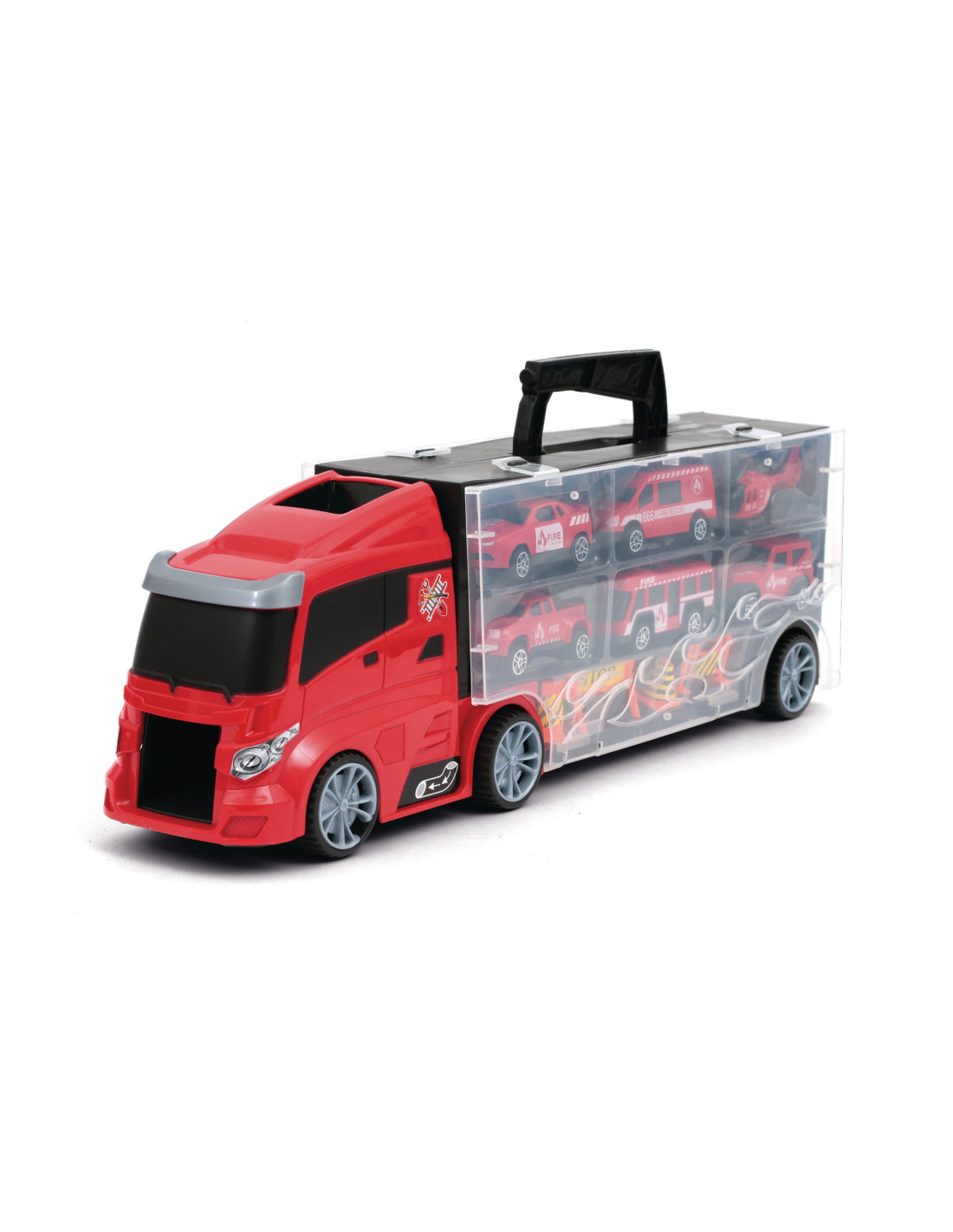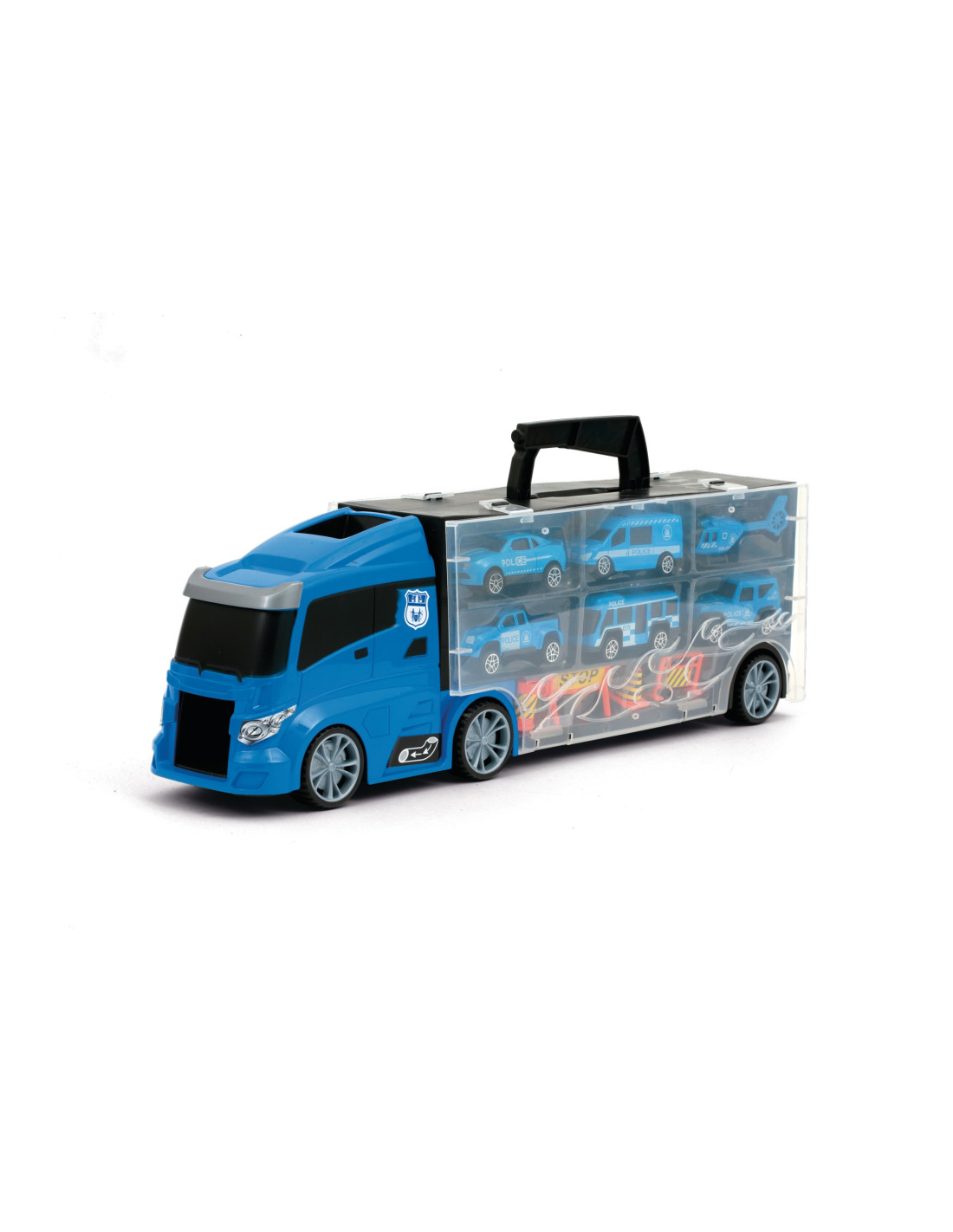 Bisarca con maniglia per portare le macchinine sempre con sé. Include 6 veicoli e cartelli segnaletici. Disponibile in 3 modelli.