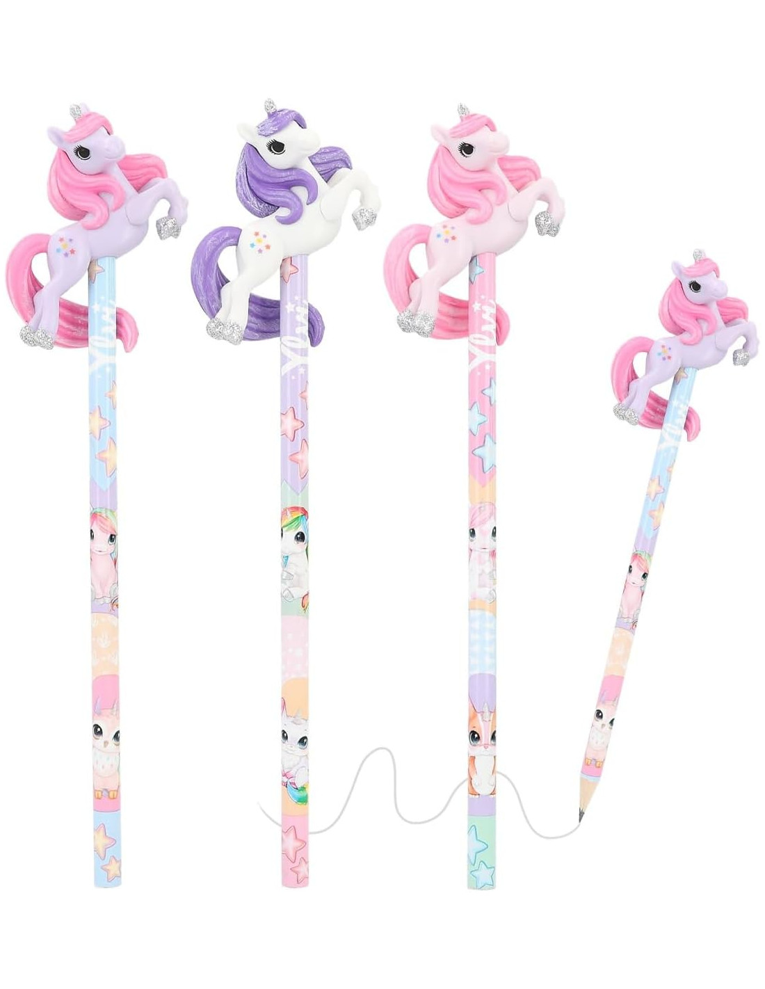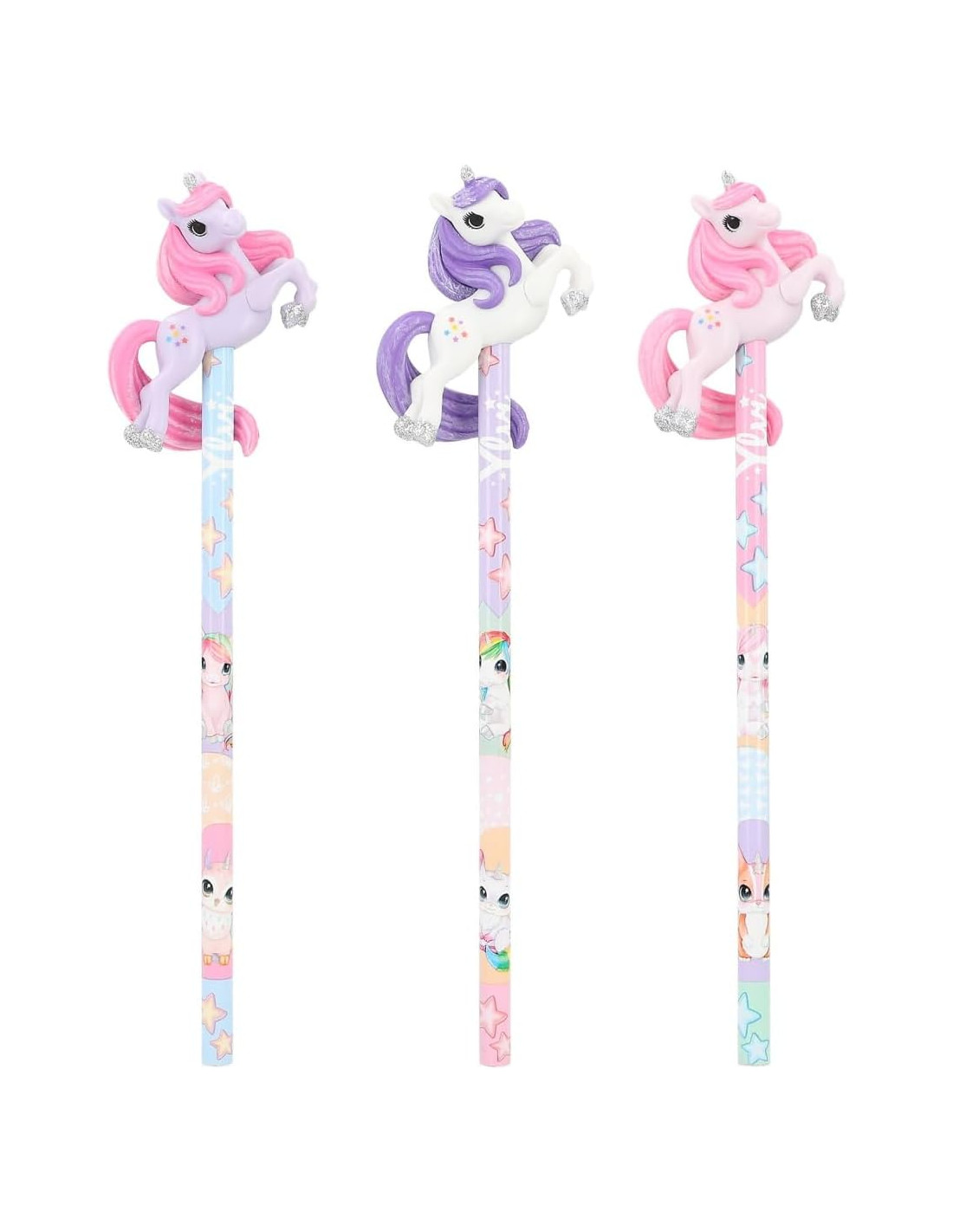 Questa graziosa matita (diametro 7 mm) con un unicorno dipinto a mano è disponibile in tre allegri colori ed è decorata con creature del mondo fantastico. Di Ylvi.