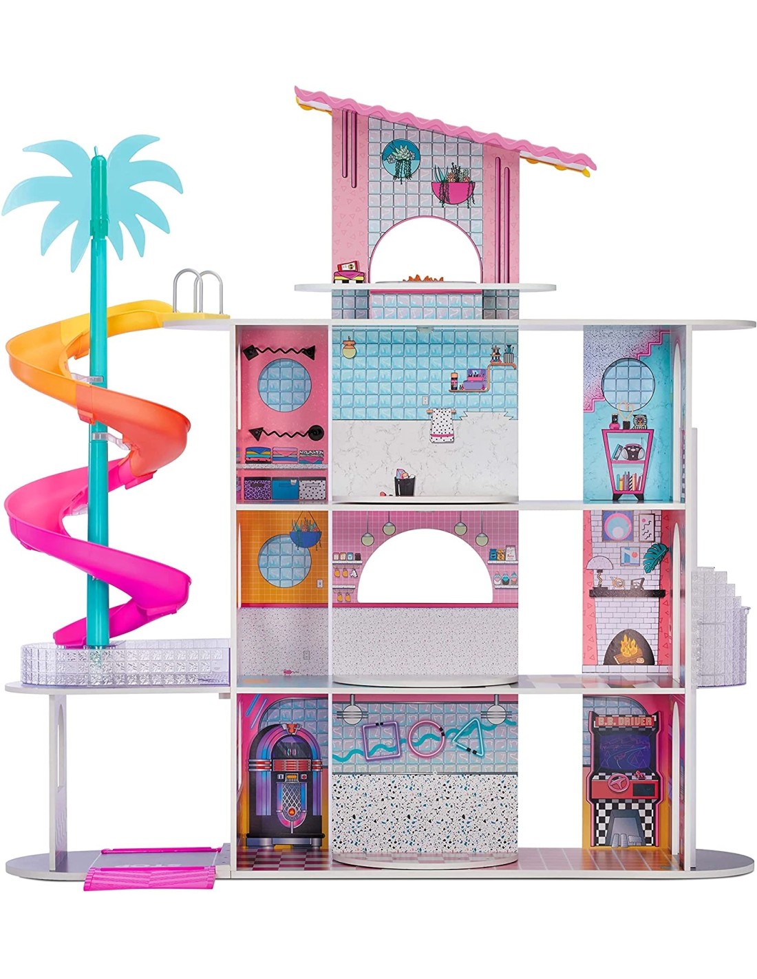 SCOPRI PIÙ DI 85 SORPRESE - La Casa delle Sorprese LOL Surprise OMG viene fornita con oltre 85 sorprese, inclusi mobili favolosi, cibi gustosi per la tua bambola LOL e una serie di accessori divertenti ed eleganti per la casa FAVOLOSA CASA - La nuovissima Casa delle Sorprese LOL Surprise OMG ha 10 favolose stanze su vari piani, tra cui una camera da letto, un bagno, una cucina, una piscina, un cinema e molto altro. Adatto per le bambole LOL Surprise e bambole OMG CARATTERISTICHE - La casa ha tantissime caratteristiche come luci interattive, un camino, un ascensore che funziona davvero con le tue bambole LOL, un drive-thru con garage e altro ancora (pile incluse e sostituibili) TANTO DIVERTIMENTO - La Casa delle Sorprese include 10 stanze che ruotano per rivelare caratteristiche extra, mobili che possono trasformarsi e un sacco di accessori con cui giocare insieme alle tue bambole LOL (non incluse) IL REGALO PERFETTO - La casa de las sorpresas LOL Surprise OMG farà felice tutti i bambini che amano le bambole LOL, rendendolo il regalo perfetto per qualsiasi occasione. Per bambini dai 3 anni in su