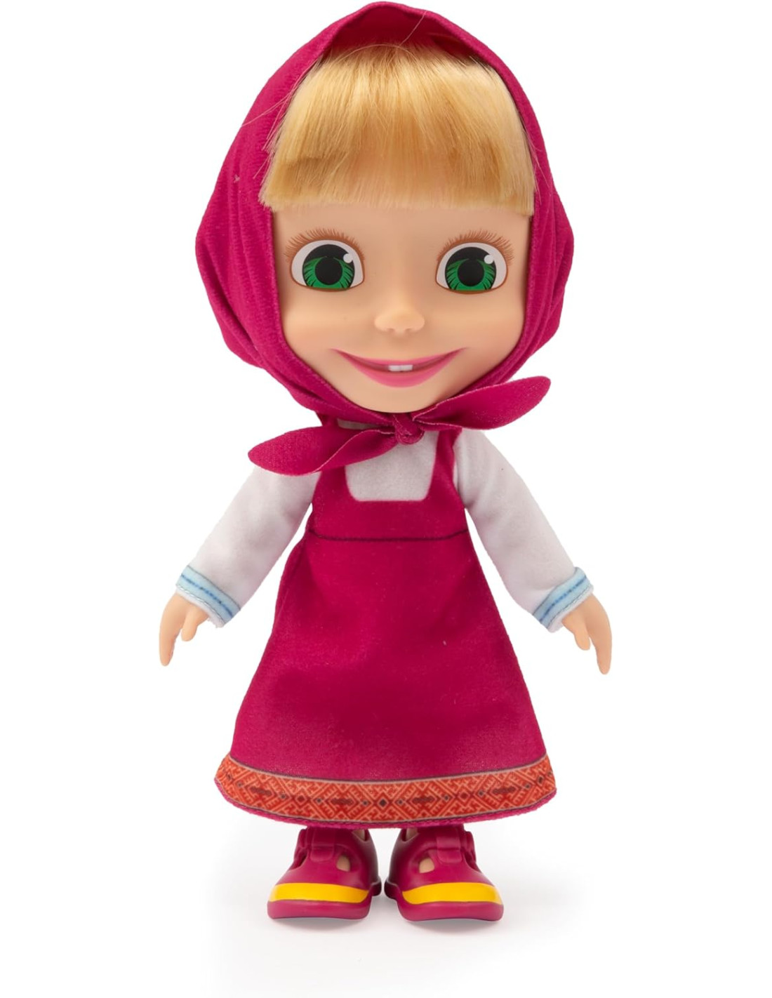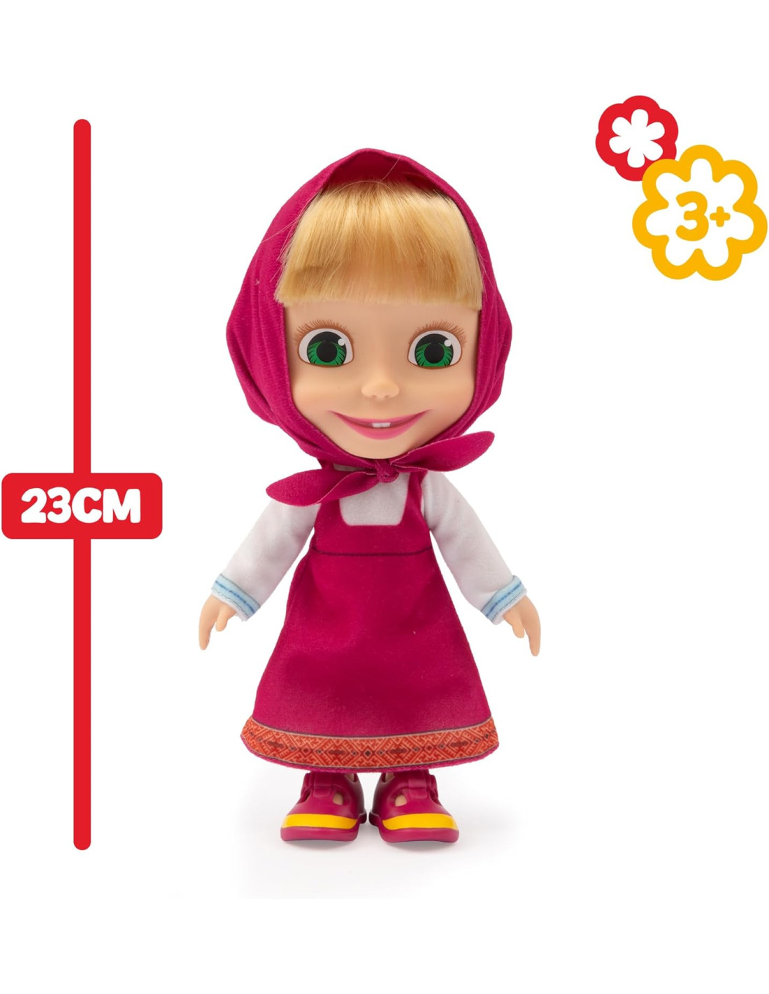 Bambola di Masha da 23 cm: Rappresenta Masha, la divertente bambina della serie TV Masha & Orso, in una versione da bambola di 23 cm, ideale per giocare e collezionare. Fedele all'Originale: Indossa il suo classico abito, proprio come nella serie TV, rendendola riconoscibile e apprezzata dai fan della serie.