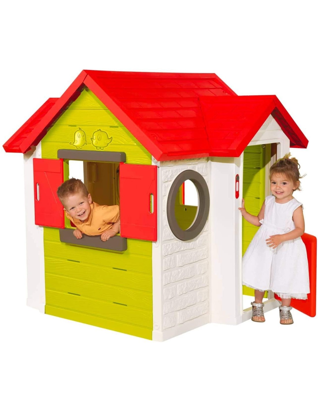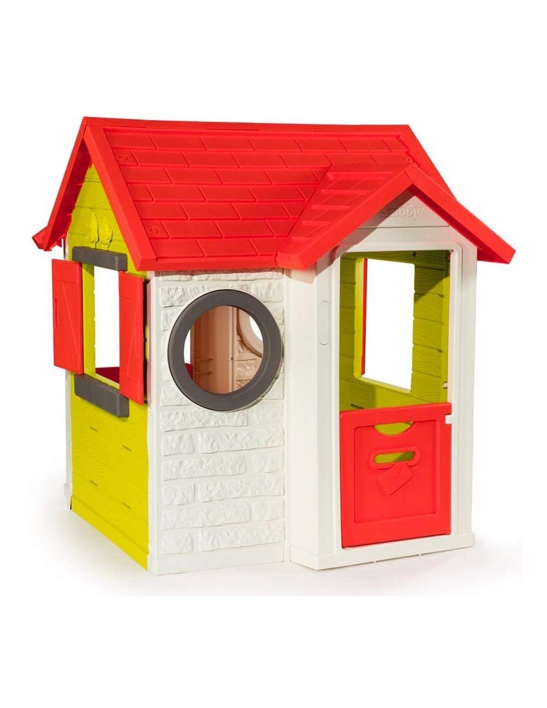 Casetta My House dal design moderno con 2 finestre 2 oblò e un davanzale sul retro, campanello elettrico, serratura funzionante, tutte le case Smoby hanno un sistema di trattamento anti-uv dei giochi che assicura resistenza e brillantezza dei colori nel tempo, adatta a bambini di età superiore ai 2 anni