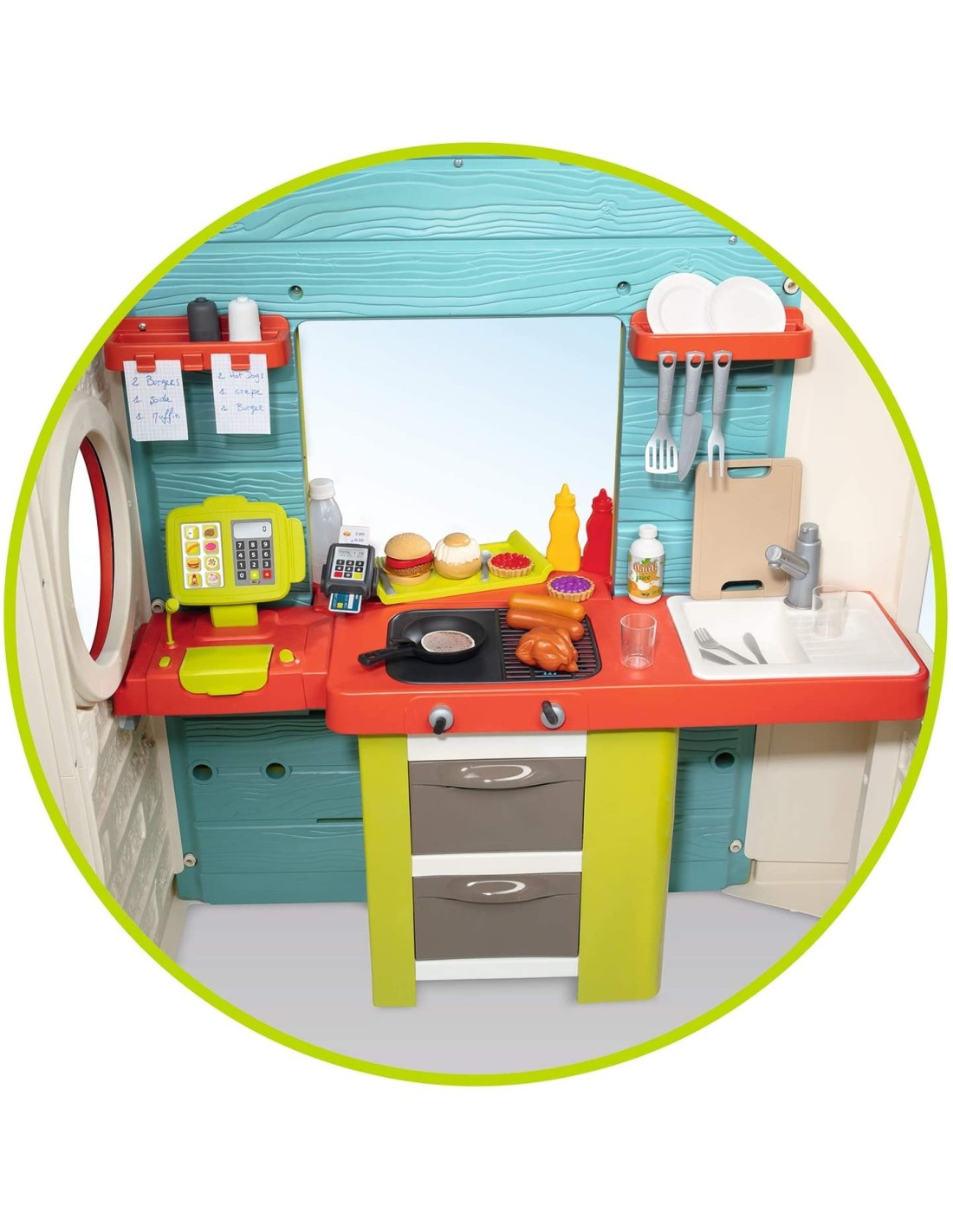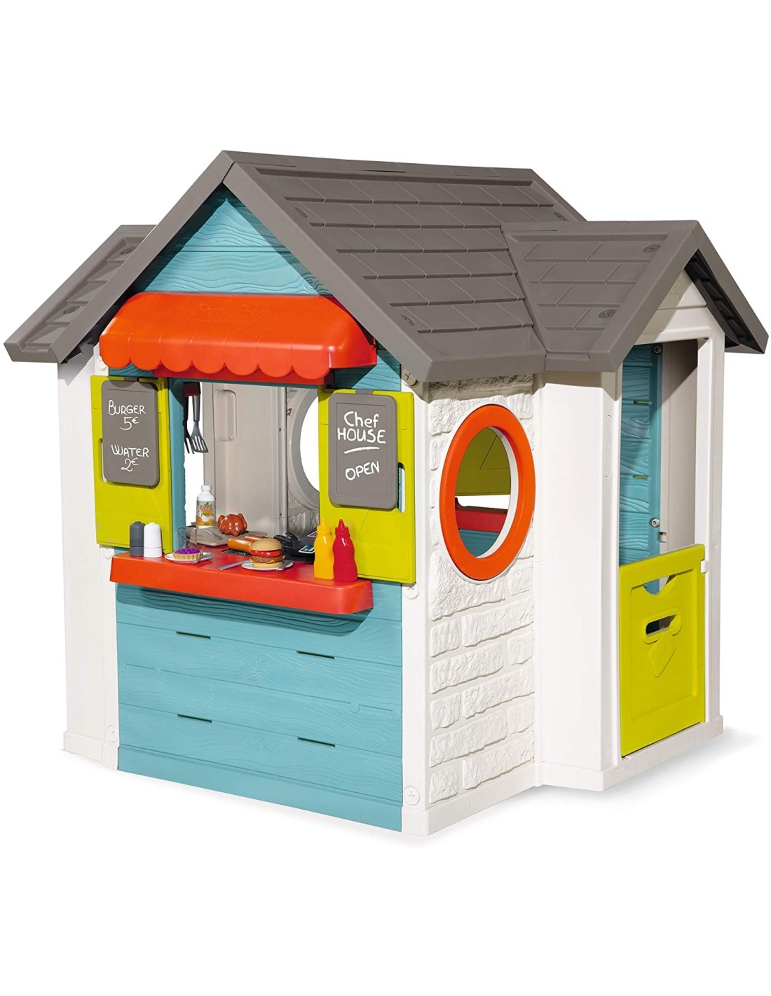 Casetta Chef House Hamburgeria di Smoby è una divertente casetta che permette al bambino di "aprire un chiosco di panini con hamburgeria". La casetta comprende moltissimi accessori e aree di divertimento per il bambino: