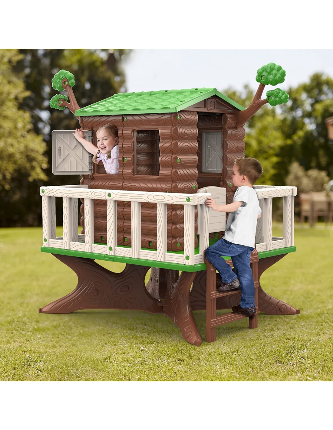 FEBER- Casa Giochi House On The Tree, Giardino, Casetta a Forma di Albero con Cui Giocare, con Balconcino Ottimo per Bambini dai 3 Anni in su