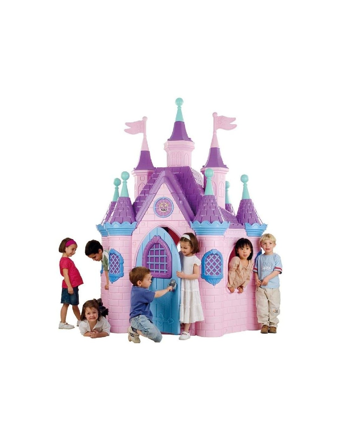 Super palazzo speciale. Un bellissimo palazzo degno di una principessa con cui divertirsi a giocare all'aperto in giardino. Il batacchio del portone è sonoro, l'interno è spazioso e decorato con dei mobili in rilievo. Facile da assemblare resiste alla luce solare e ai cambi di temperatura. Peso 59 Kg.