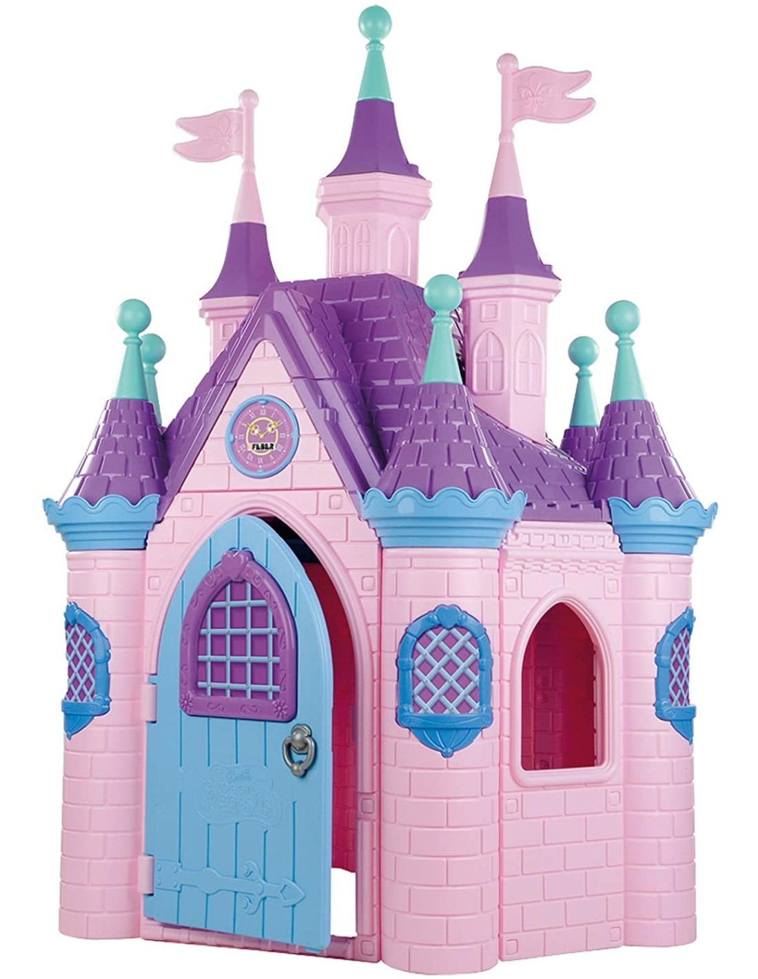 Questo enorme e spazioso castello in stile Barbie presenta nove torrette con una porta spettacolare che sembra proprio vera. Include un batacchio con suoni che bussano e suoni di campane. Ci sono cinque finestre nei muri per consentire alla luce di entrare negli interni e quelle simulate nelle torrette con le foto della principessa Barbie. Un orologio rosa colorato è sulla parete frontale. Adatto per bambini di età compresa e superiore ai 3 anni.