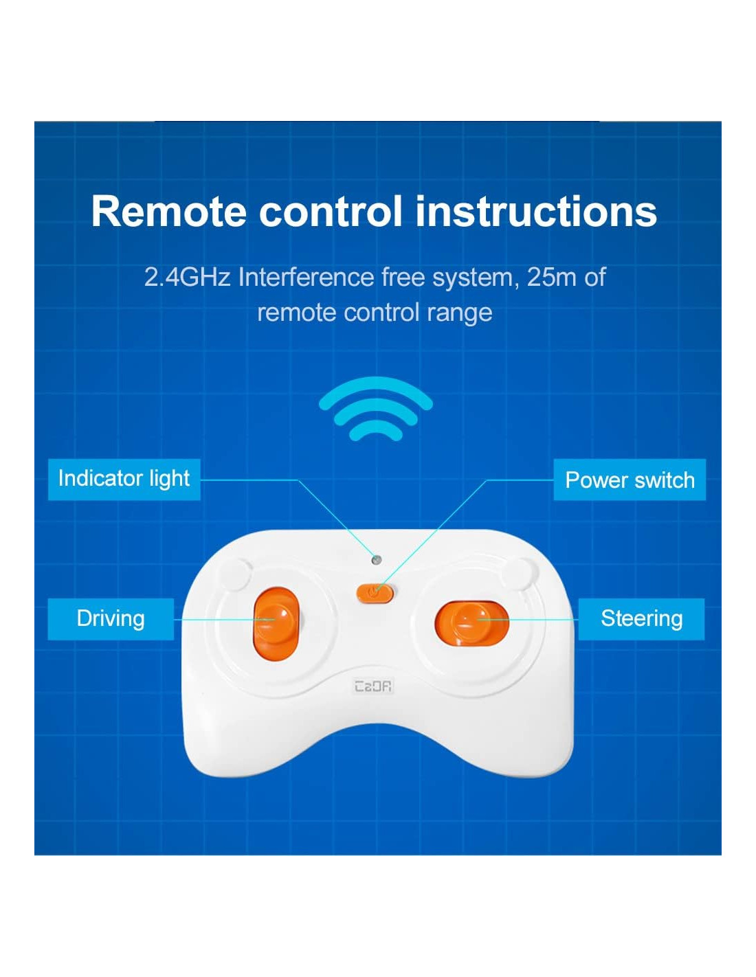 Il telecomando in dotazione consente il controllo di base del veicolo, ad esempio come guidare in qualsiasi direzione. L'app può essere scaricata scansionando il codice QR sulla confezione.