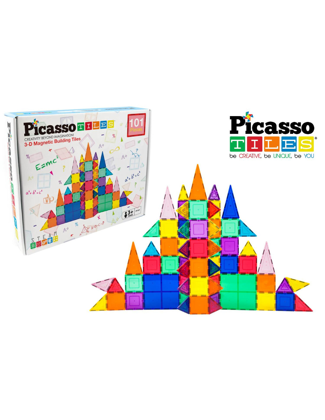 Il set da 101 pezzi di mattoncini magnetici presenta una varieta' di forme divertenti e creative per consentire design unici o per essere utilizzato in combinazione con altri giocattoli da costruzione magnetici PicassoTiles come componenti aggiuntivi integrati per offrire possibilita' illimitate di strutture per coltivare la creativita' dei bambini e intelligenza. Nessuna limitazione, compatibile per costruire quanto vuoi aggiungendo piu' pezzi per creare tanti nuovi capolavori.