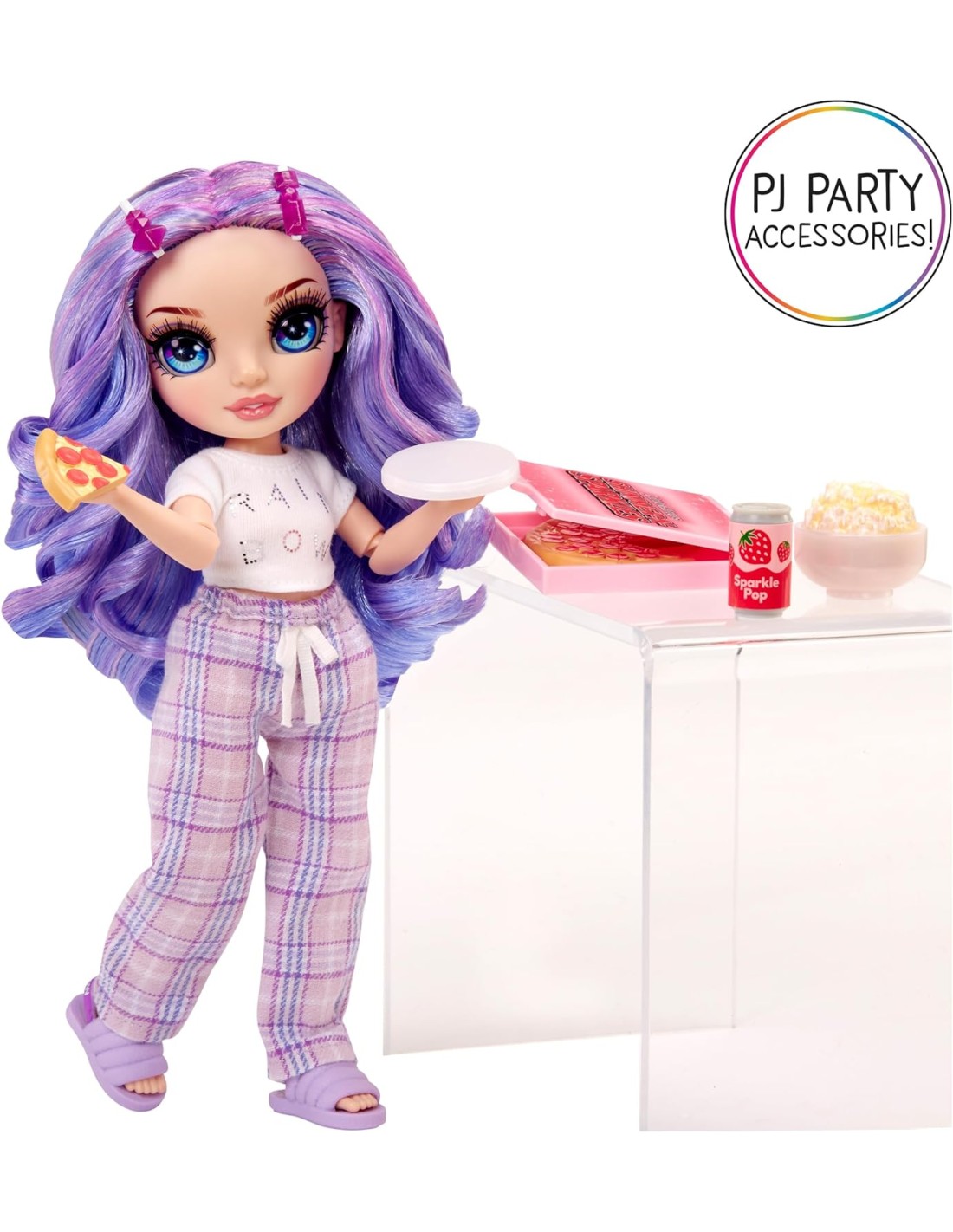 MGARainbow High Junior High PJ Party - Violet (viola) - Bambola snodata da 22 cm con morbida tutina, pantofole e accessori da gioco
