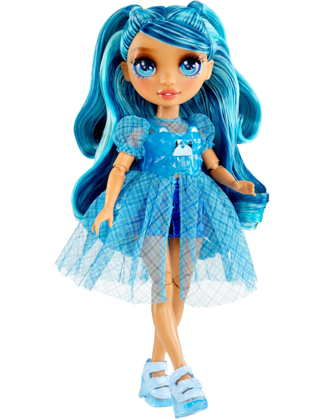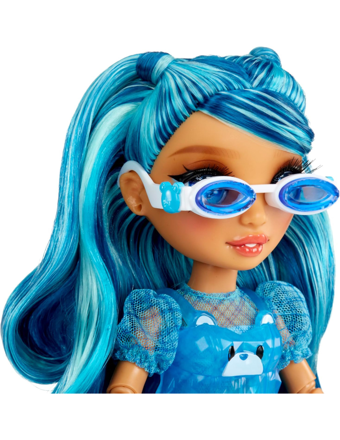 BRILLA IN BLU: Skyler è vestita con il suo caratteristico blu dalla testa ai piedi, con tanti scintillii. Ha splendidi lineamenti dettagliati, bellissimi capelli lunghi blu, ciglia lunghe e occhi di vetro