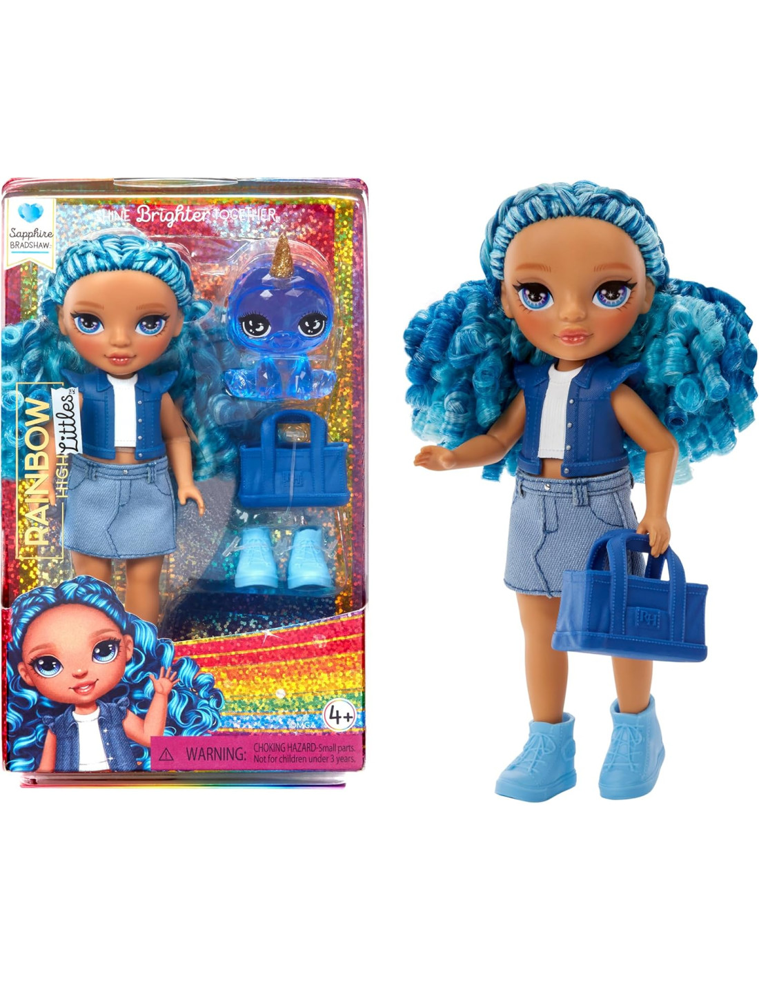 Rainbow High Littles - Sapphire Bradshaw - Bambola fashion piccola e snodabile - Bambola blu alta 14 cm con borsa e animale domestico magico Yeti - Per bambini e collezionisti
