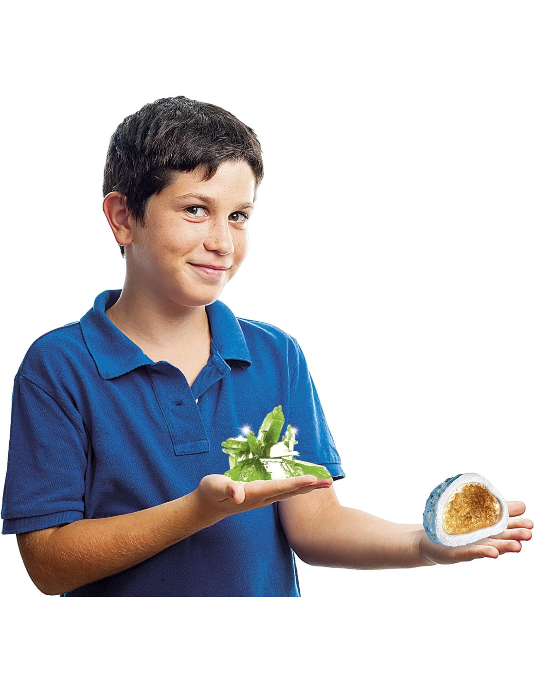 IMPARARE GIOCANDO: include uno stampo per riprodurre un geode e materiali per creare cristalli colorati, accompagnato da un manuale scientifico che spiega le reazioni chimiche dei sali e i processi di formazione dei cristalli