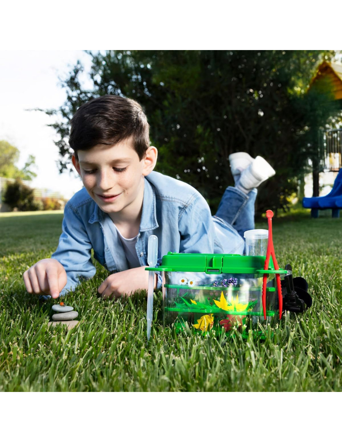COME GIOCARE: monta la fauna box e lo strumento acchiappa-insetti, cattura piccoli animaletti e custodiscili con cura; grazie ai consigli di Geopop, osservali da vicino e scopri curiosità scientifiche sul loro comportamento