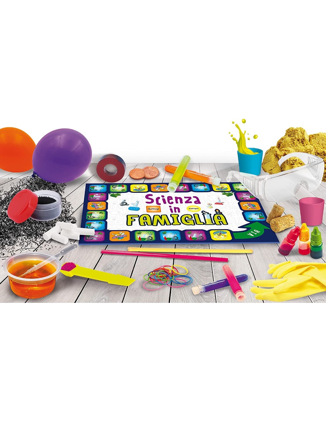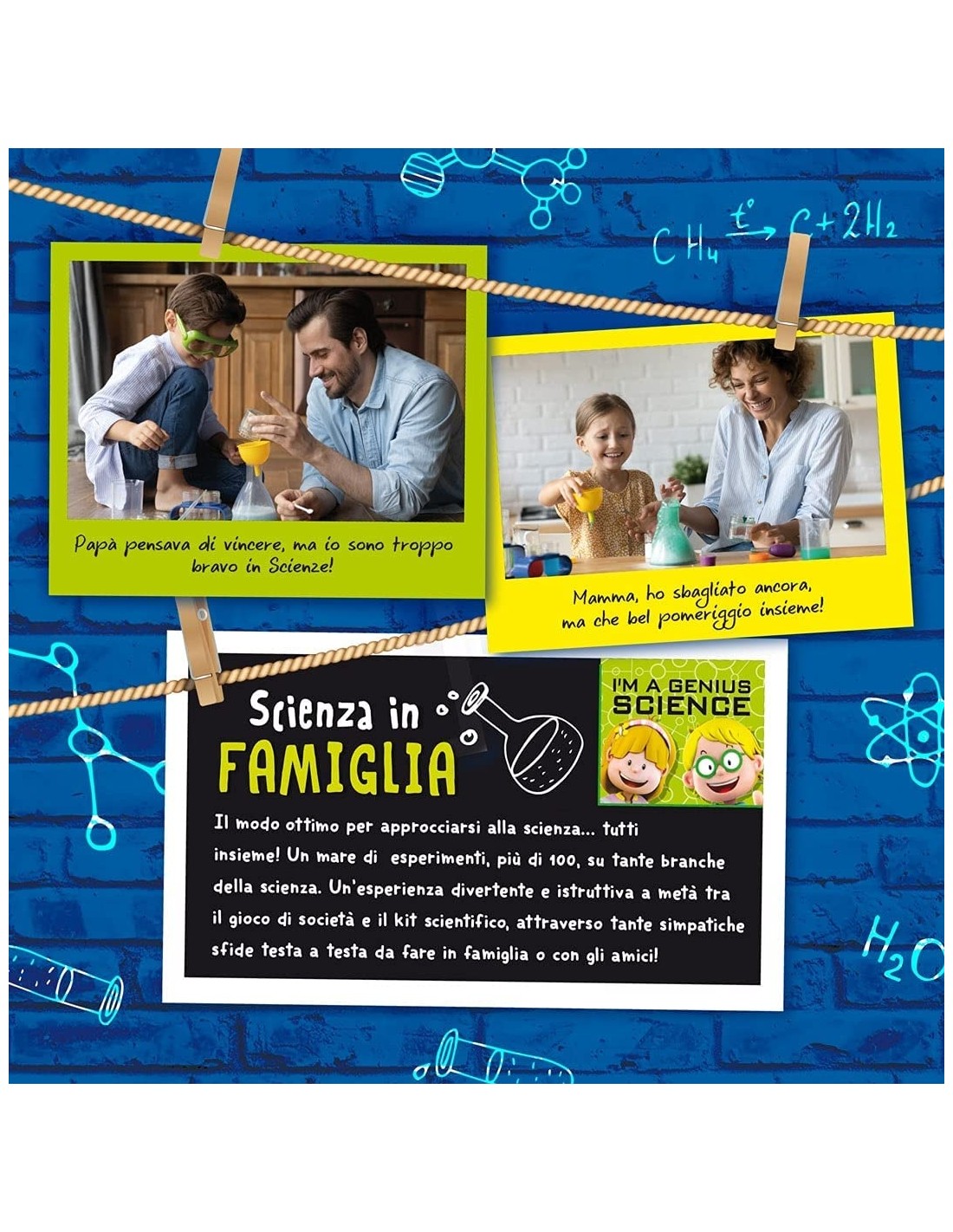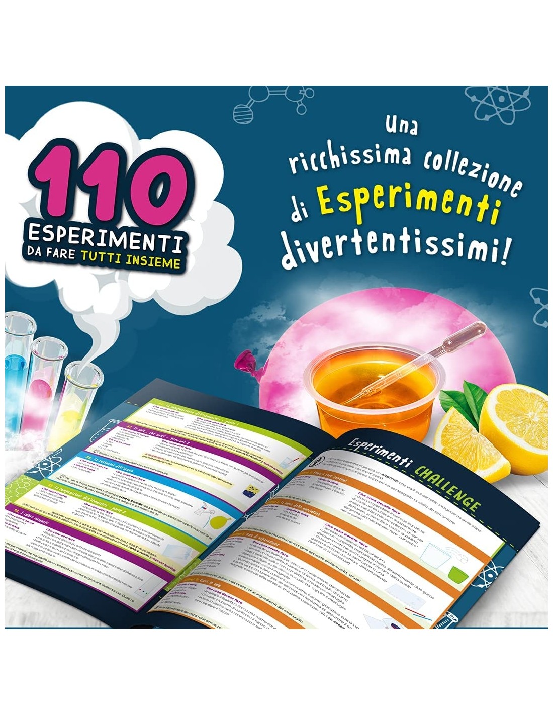 La scienza da fare tutti insieme Più di 150 esperimenti facili e sicuri; divertimento e scoperte per tutta la famiglia; kit scientifico di ottima qualità Contenuto: Magnete, sabbia magica, palettina dosatrice, coloranti liquidi, cilindri, pipette pasteur, bicchierini graduati, bicchierini trasparenti, vaschette, provette, palloncini, cannucce, gessetti, polvere di ferro, carta filtro, reagenti chimici, specchietti, guanti e occhiali protettivi, manuale illustrato Sperimentazione scientifica; apprendimento di nozioni fisiche e chimiche; osservazione; immaginazione e creatività
