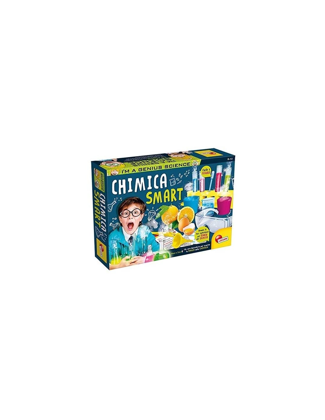 Gioco di sperimentazione scientifica, 4 reagenti, portaprovette in plastica, misurino, pipetta pasteur, pinzetta, paletta, bicchierini colorati, diario del chimico, special-cards, tavola periodica degli elementi
