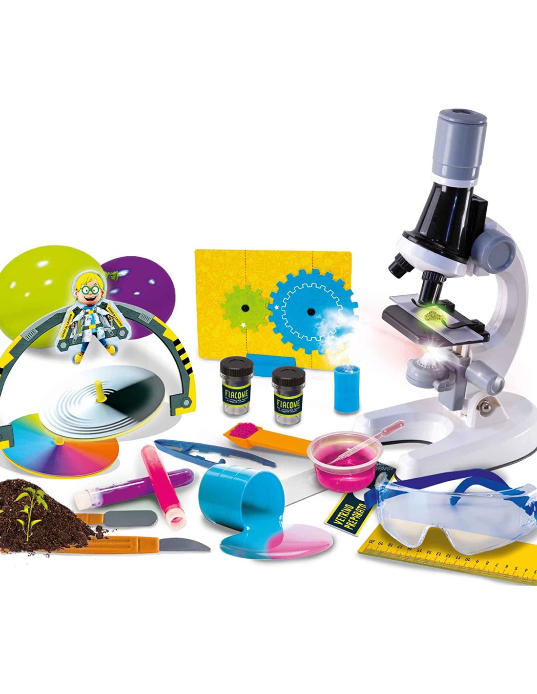 Con microscopio a 1200 ingrandimenti, oltre 120 esperienze, tantissime ore di gioco per portare avanti le tue ricerche, con materiale divulgativo e con un kit scientifico