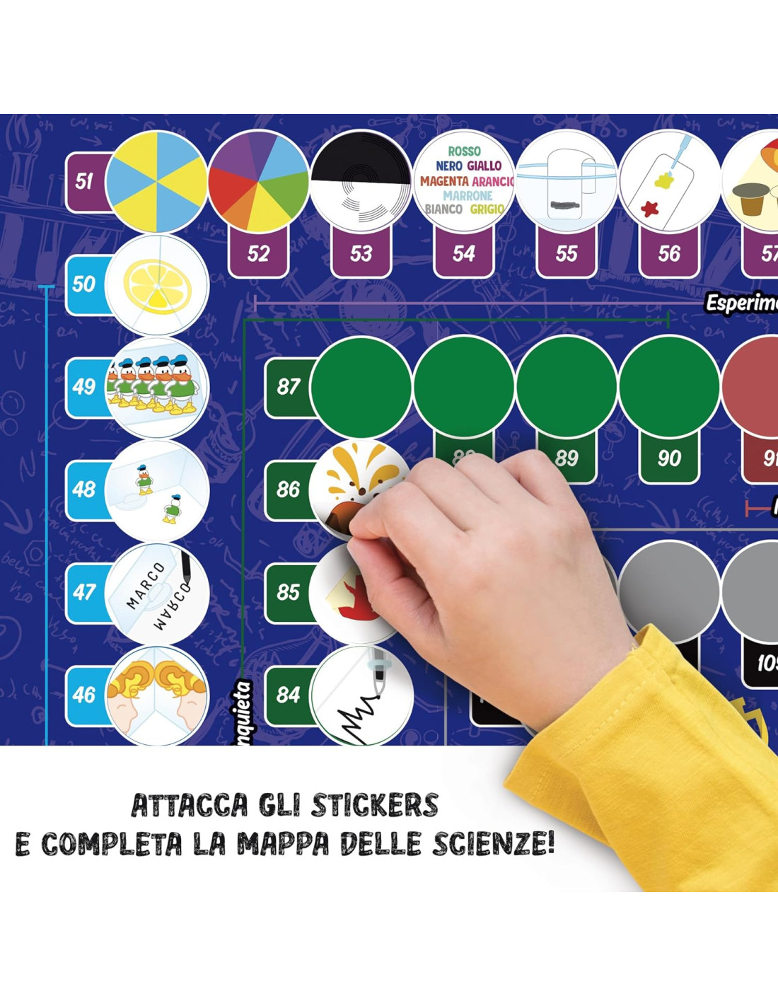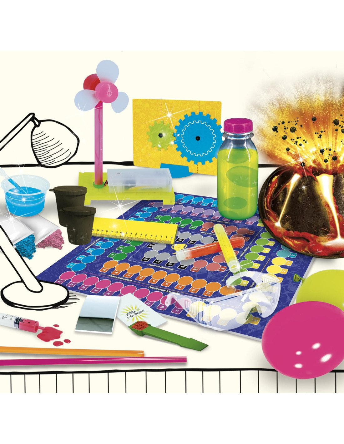 Il kit per giovani scienziati Ben 100 esperimenti per i piccoli scienziati, attività facili e sicure, tante scienze da scoprire, crea la tua mappa delle scienza, chimica e fisica, botanica e ottica, anatomia e meccanica, ricco manuale illustrato, guida al metodo Sperimentazione e approccio al metodo scientifico, nozioni di chimica, fisica, botanica, ottica, meccanica, anatomia, sviluppo delle capacità di osservazione e di confronto, manualità Gioco di sperimentazione scientifica, manuale illustrato di 64 pagine, vulcano in plastica, regenti, colorante alimentare, semi biologici, vaso, torba, occhiali di protezione, guanti in lattice, connettore, bottiglie, vaschette, trottola, spatola