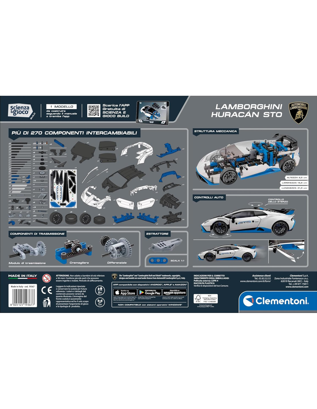 Clementoni- Scienza Build Huracan STO-Set Costruzioni Bambini, Modello Lamborghini, Laboratorio Meccanica Auto Sportiva, Gioco Scientifico 8 Anni, Italiano, Made in Italy, 19367, Multicolore
