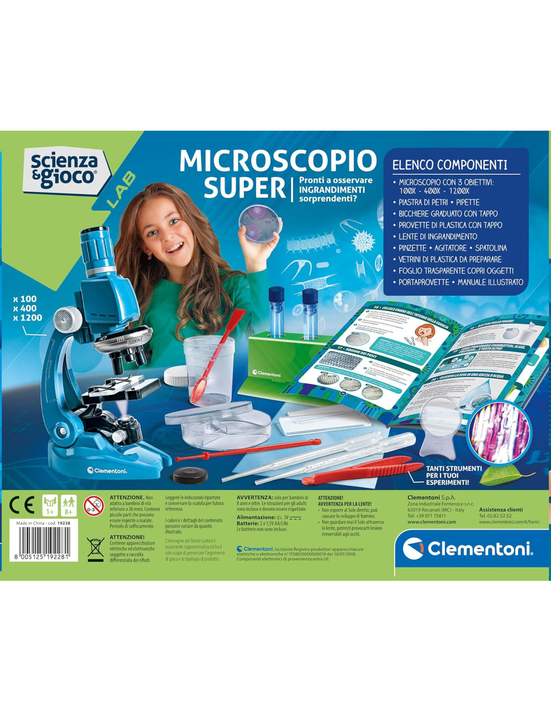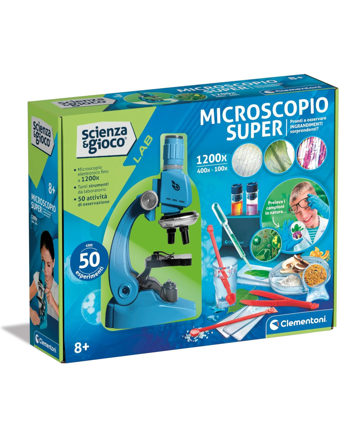 Clementoni Scienza e Gioco Lab - Microscopio Super, Kit Scientifico Bambini 8+ Anni, Laboratorio con Lenti di Ingrandimento Professionali 100x, 400x e 1200x