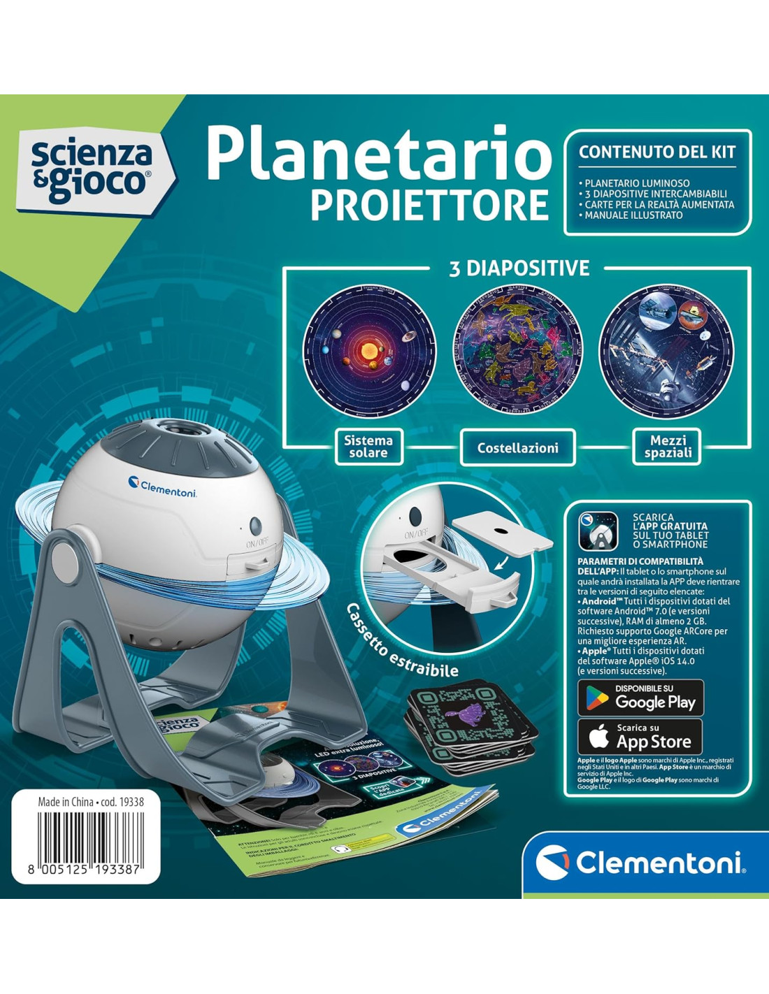 COSA CONTIENE: gioco scientifico Made in Italy adatto per bambini da 8 anni in su, include un planetario proiettore con diapositive intercambiabili, app dedicata con quiz e animazioni