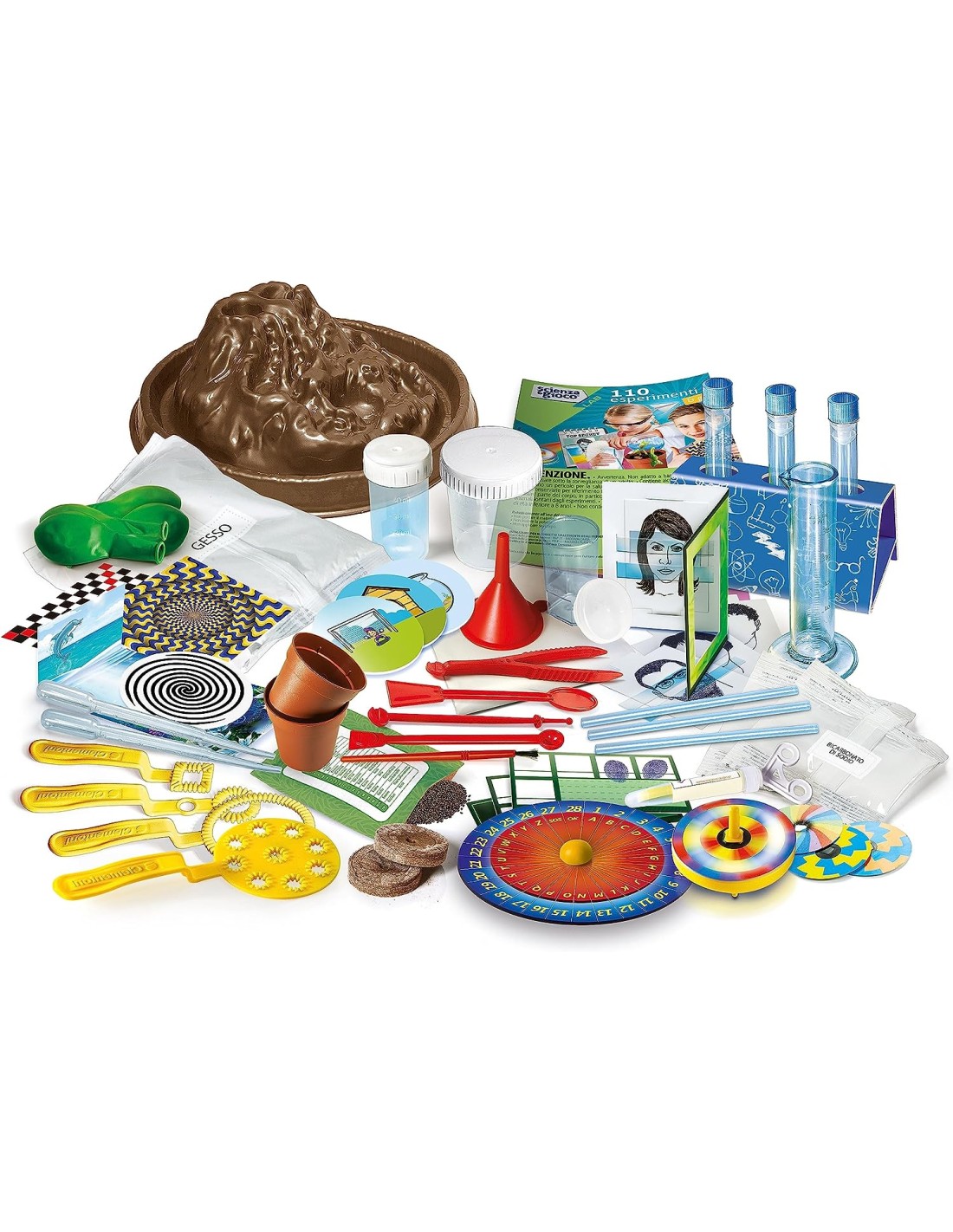 Contiene tutto l'occorrente per realizzare gli esperimenti e avvicinarsi al mondo della chimica, della fisica, della botanica e dell'ottica in modo facile, divertente e coinvolgente. Un esperimento per ogni occasione, calati nei panni di un grande scienziato e divertiti con un kit davvero unico!