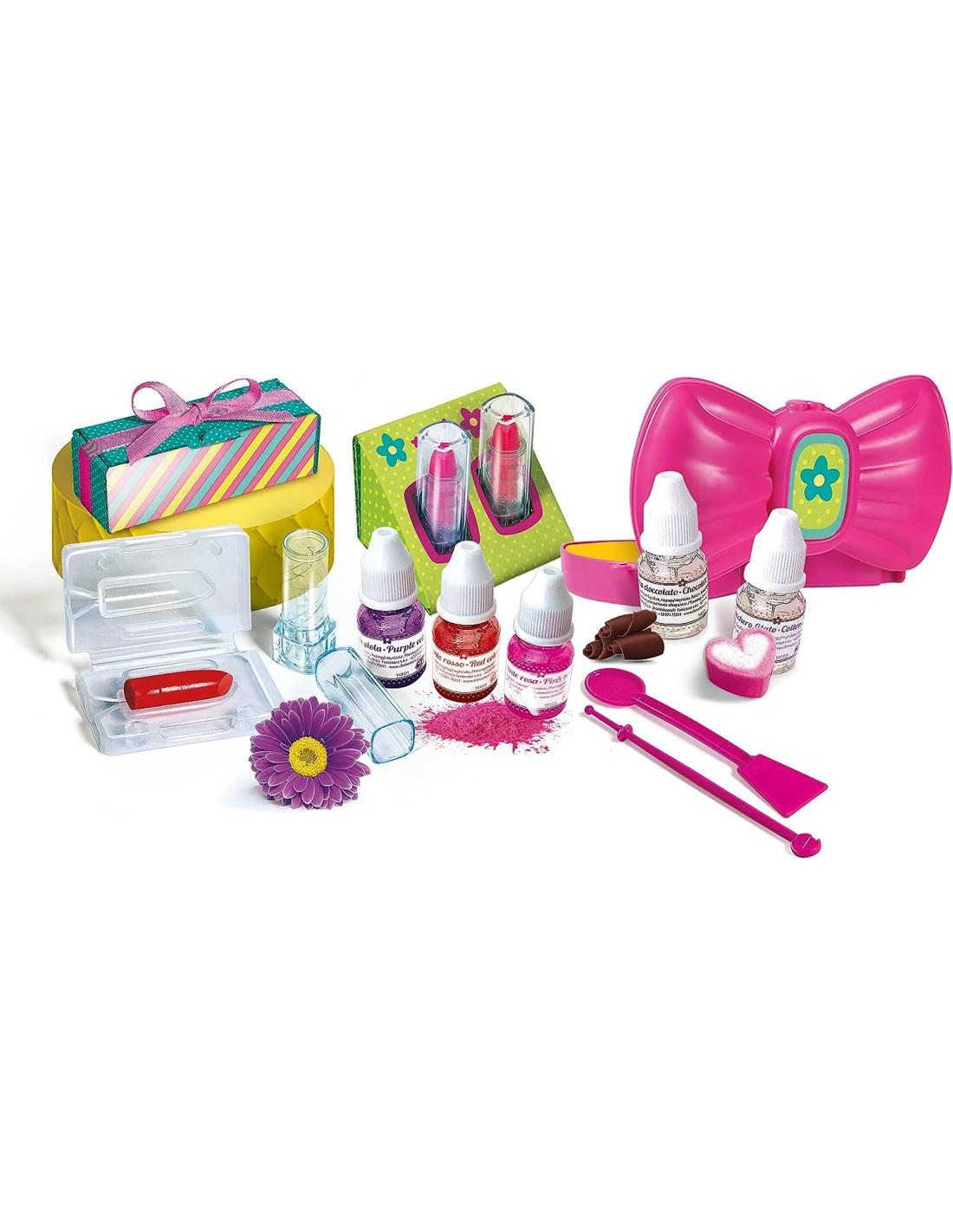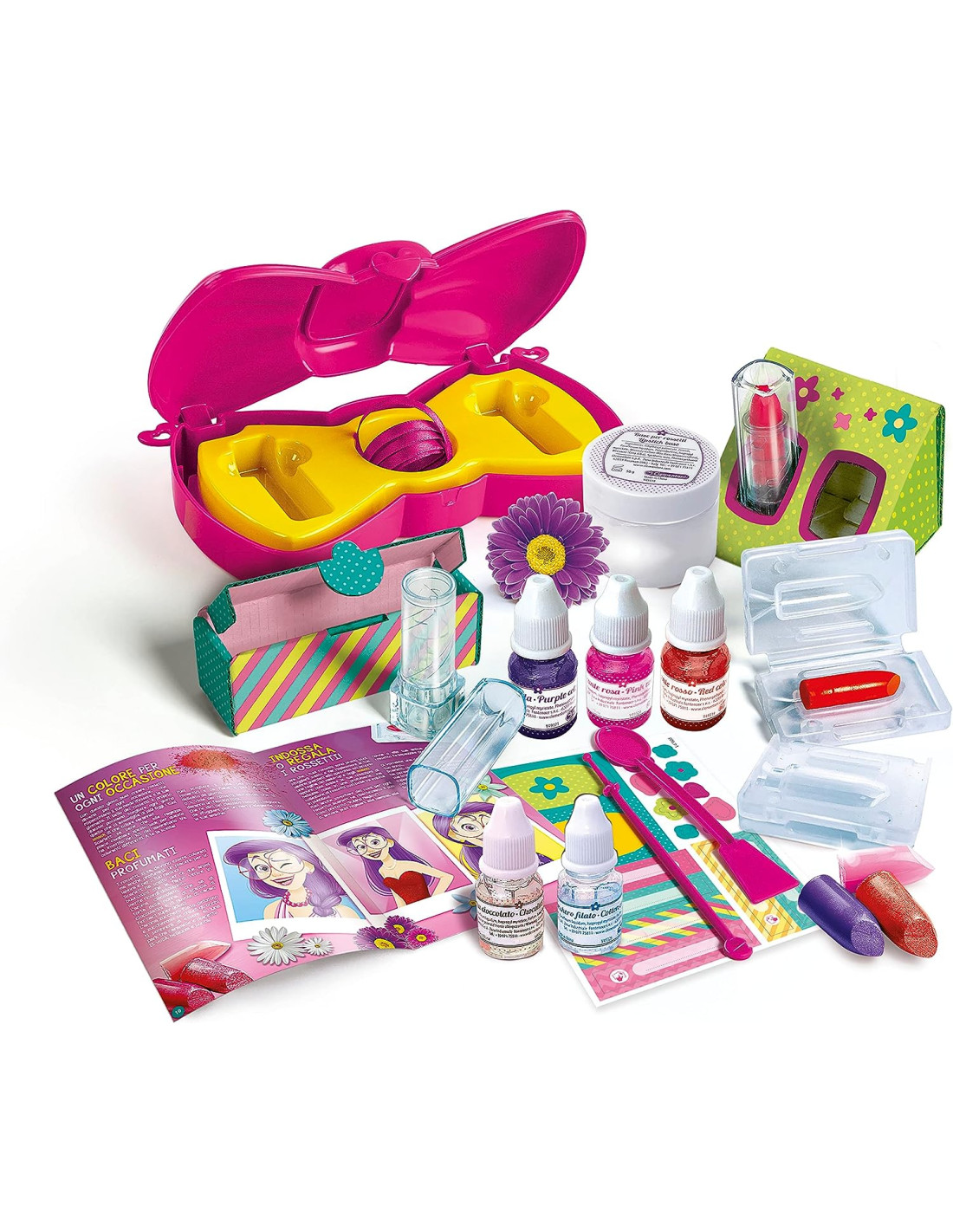 Contiene tutto l'occorrente e la strumentazione scientifica per realizzare rossetti in modo facile e divertente! Il ricco manuale illustrato guiderà i bambini in tutte le fasi di realizzazione e li porterà alla scoperta dei segreti della cosmesi attraverso un divertente storytelling.