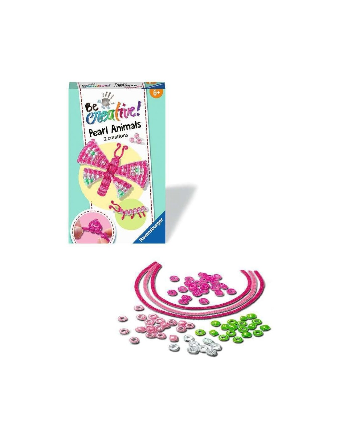 Crea colorati e divertenti mondi artigianali con diverse tecniche fai-da-te Infila coloratissime perle e realizza una bellissima farfalla E' facile e divertente, basta seguire le istruzioni dettagliate e cominciare a creare piccoli capolavori Per bambini a partire dai 6 anni Linea di Giochi creativi Ravensburger