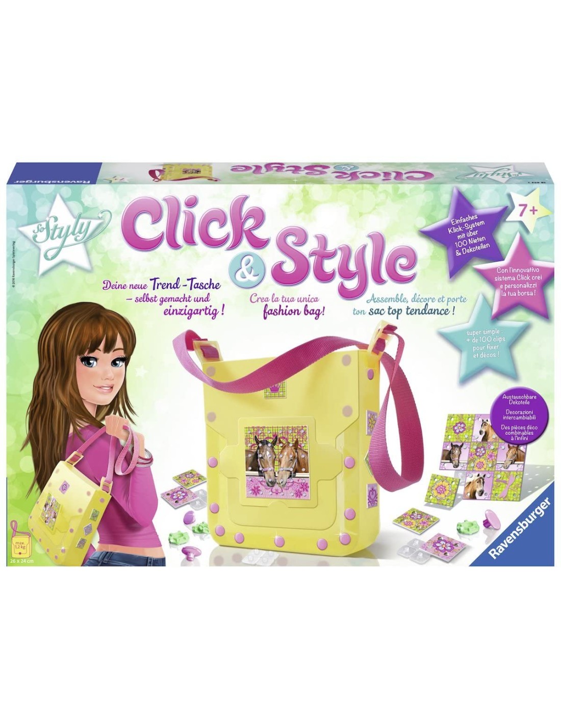 Sarà facilissimo creare la tua borsa con il sistema ad incastro CLICK! Unisci i fogli in plastica flessibili e scegli le decorazioni intercambiabili: la tua borsa trendy è già pronta.