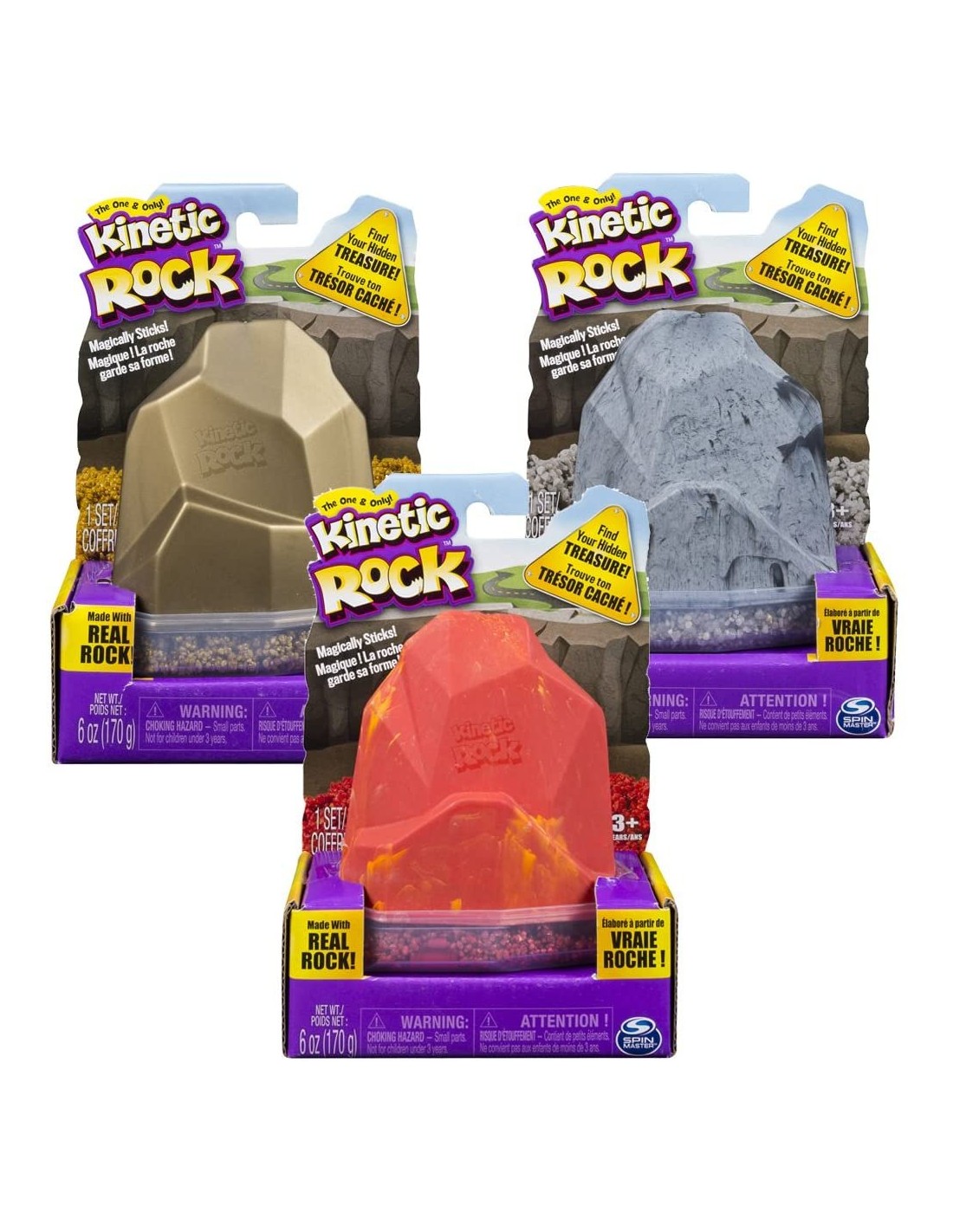 Descrizione ATTENZIONE: Il prodotto è disponibile in vari colori e/o modelli. Non siamo in grado di offrire un modello/colore in particolare. Confermando l'acquisto, si riceverà uno dei colori o dei modelli a seconda della disponibilità senza possibilità di scelta. Kinetic Rock è un composto modellabile creato con vera roccia. Si può giocare quanto si vuole e non secca. La confezione a forma di roccia può essere richiusa per portare sempre con se Kinetic Rock. In ogni confezione 170 gr di Kinetic Sand Rock e 1 accessorio. 3 colori assortiti: grigio roccia, oro e rosso lava.